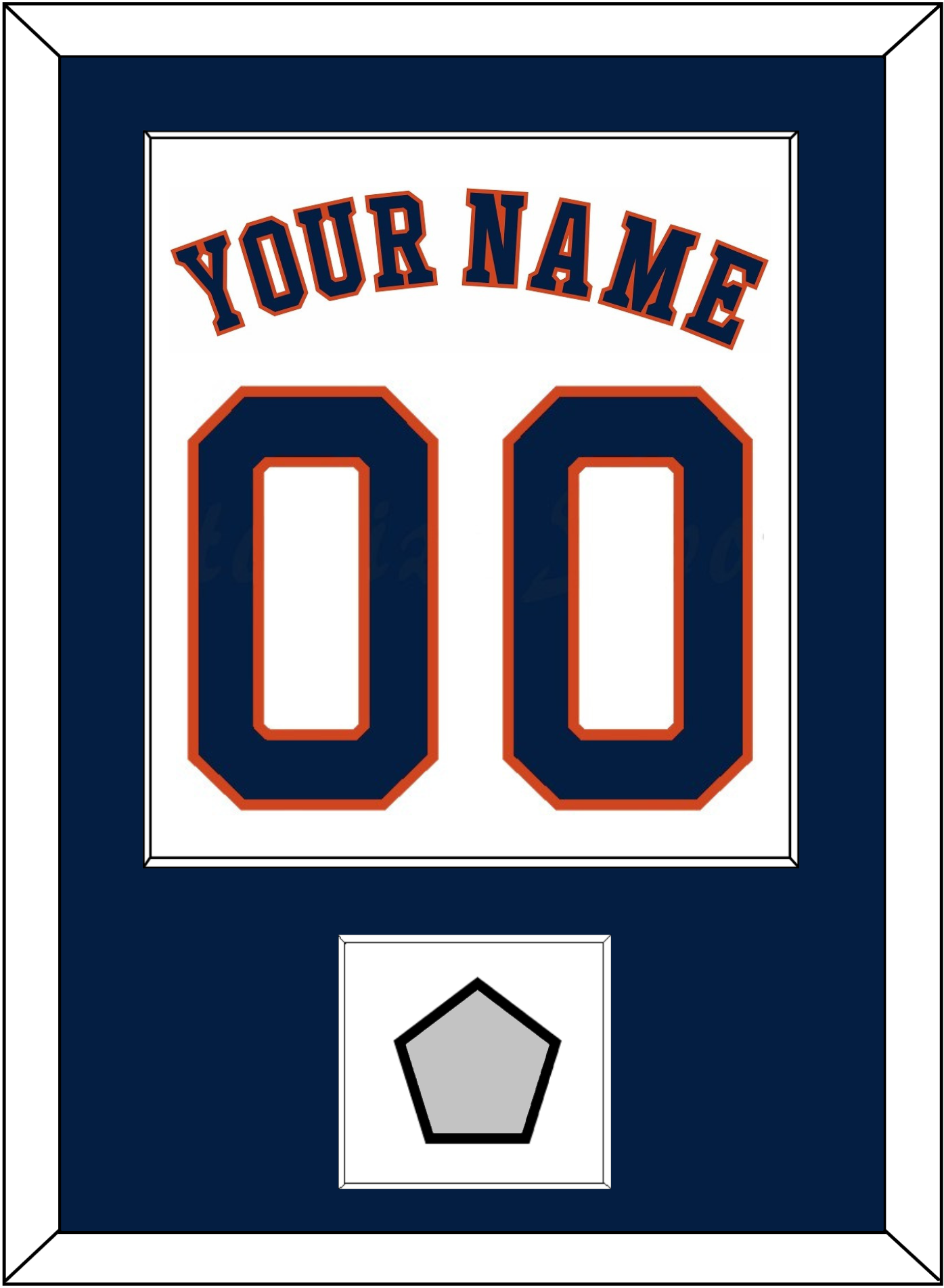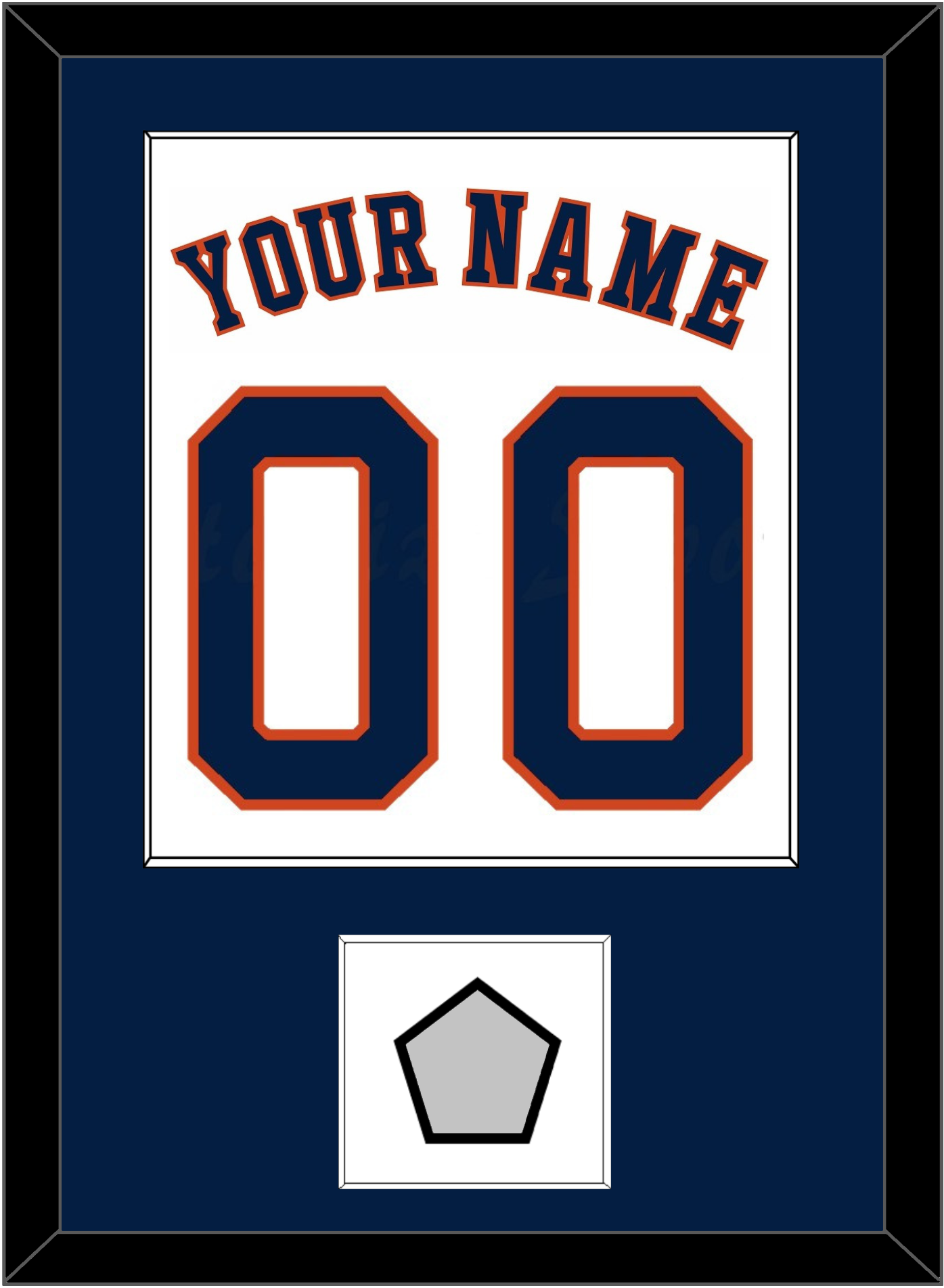 Houston Home White Jersey Name & Number With 2017 Or 2022 World Series Champions Patch. Single Mat Cut: Blue Mat With Blue Name, Number & Patch Mounted On A White Mat. White Or Black Frame.