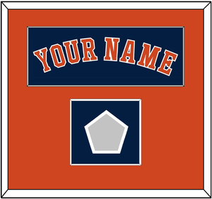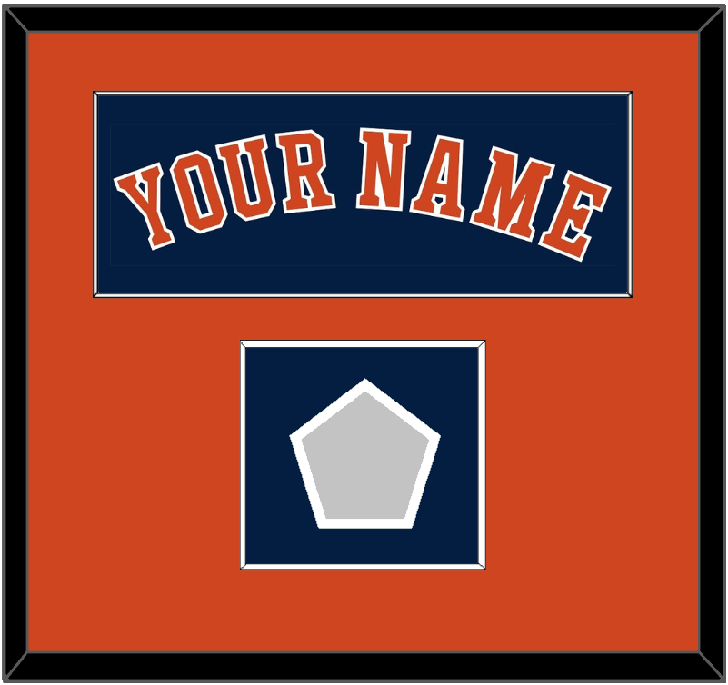Houston Alternate Blue Jersey Name With 2017 Or 2022 World Series Champions Patch. Single Mat Cut: Orange Mat With Orange Name & Patch Mounted On A Blue Mat. White Or Black Frame.