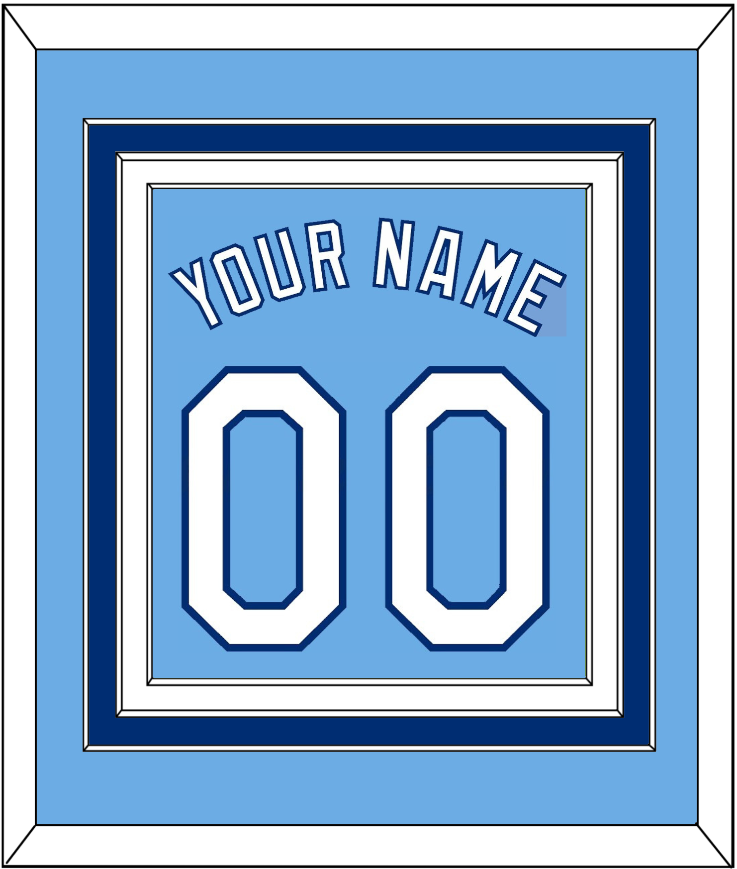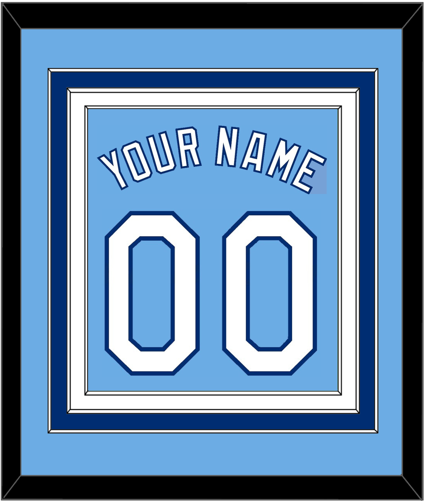 Kansas City Alternate Powder Blue Jersey Name & Number. Triple Mat: Powder Blue Mat Over A Blue Mat Over A White Mat. White Name And Number Mounted On A Powder Blue Mat. White Or Black Frame.