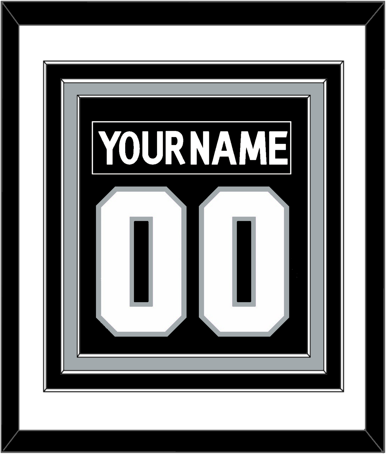 Los Angeles Home Black Jersey (2017 Through 2024) Nameplate & Number (From The Back Of The Jersey). Triple Mat Cut: White Mat Over A Black Mat Over A Silver Mat. Black Nameplate And White Number Mounted On A Black Mat. Black Frame.