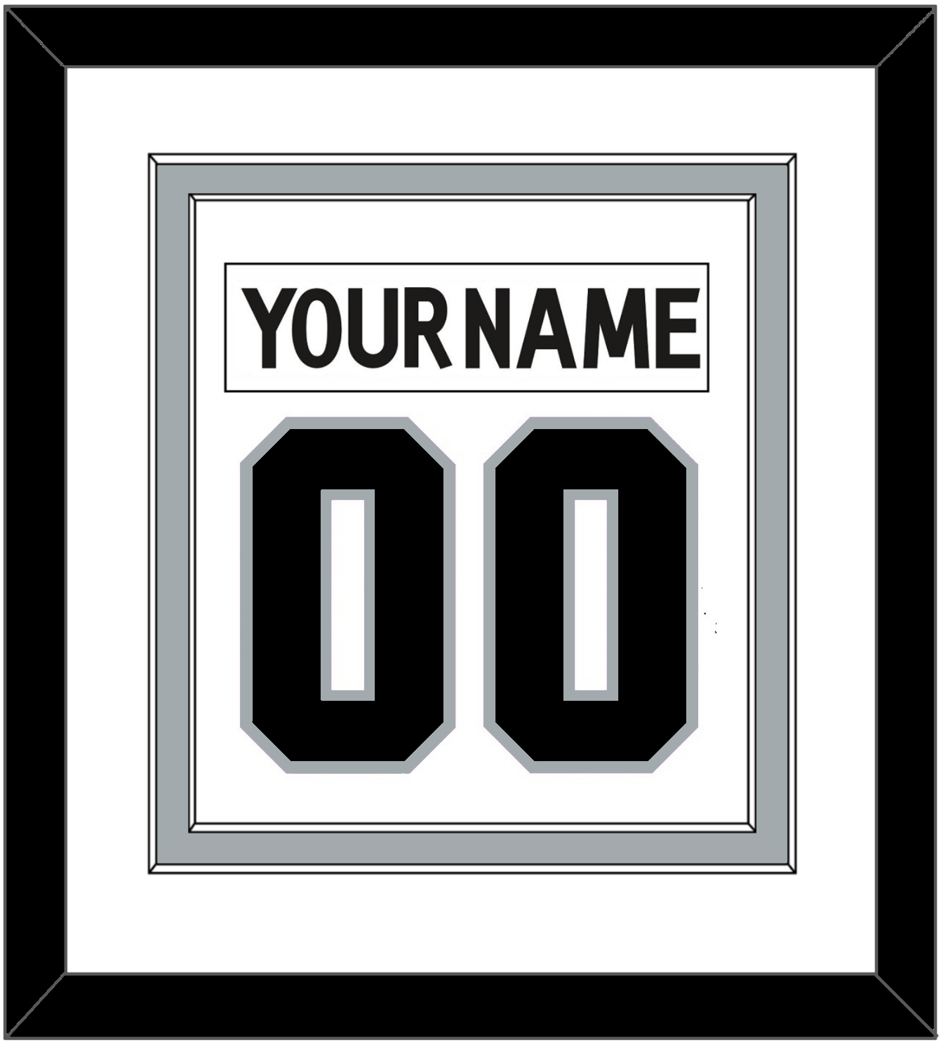 Los Angeles Road White Jersey (2017 Through 2024) Nameplate & Number (From The Back Of The Jersey). Double Mat Cut: White Mat Over A Silver Mat. White Nameplate And Black Number Mounted On A White Mat. Black Frame.