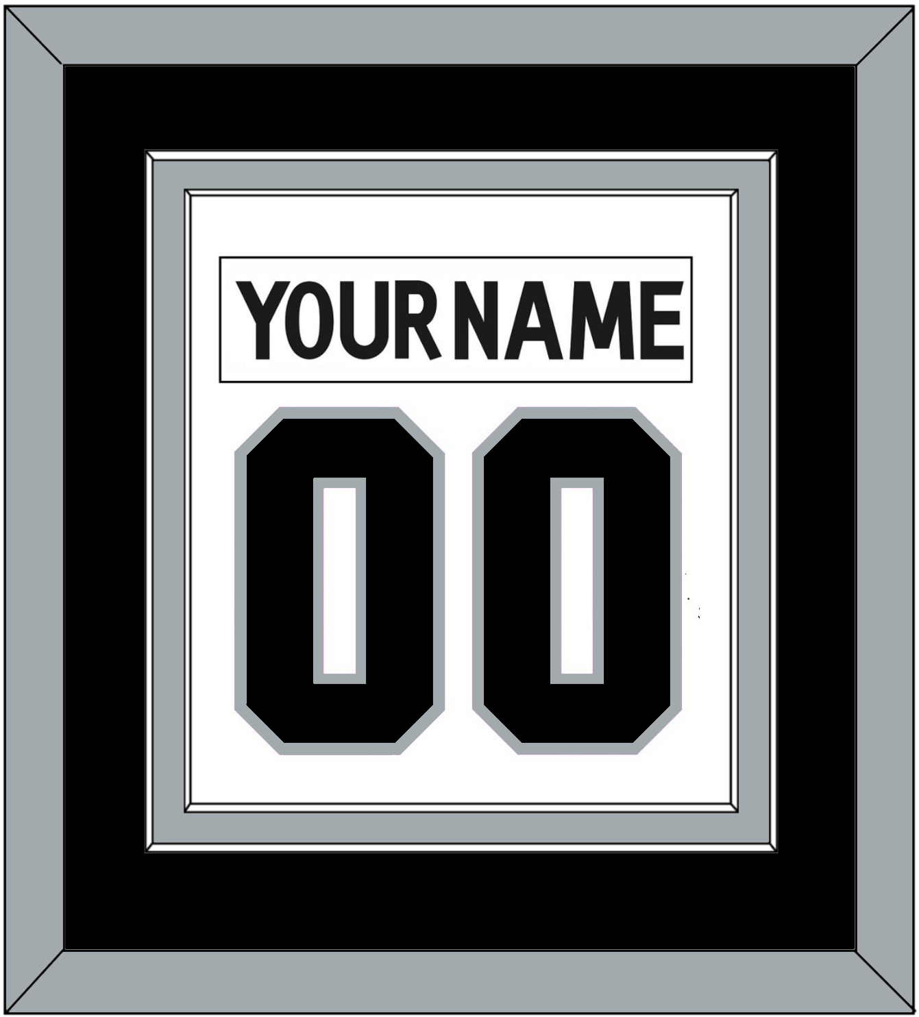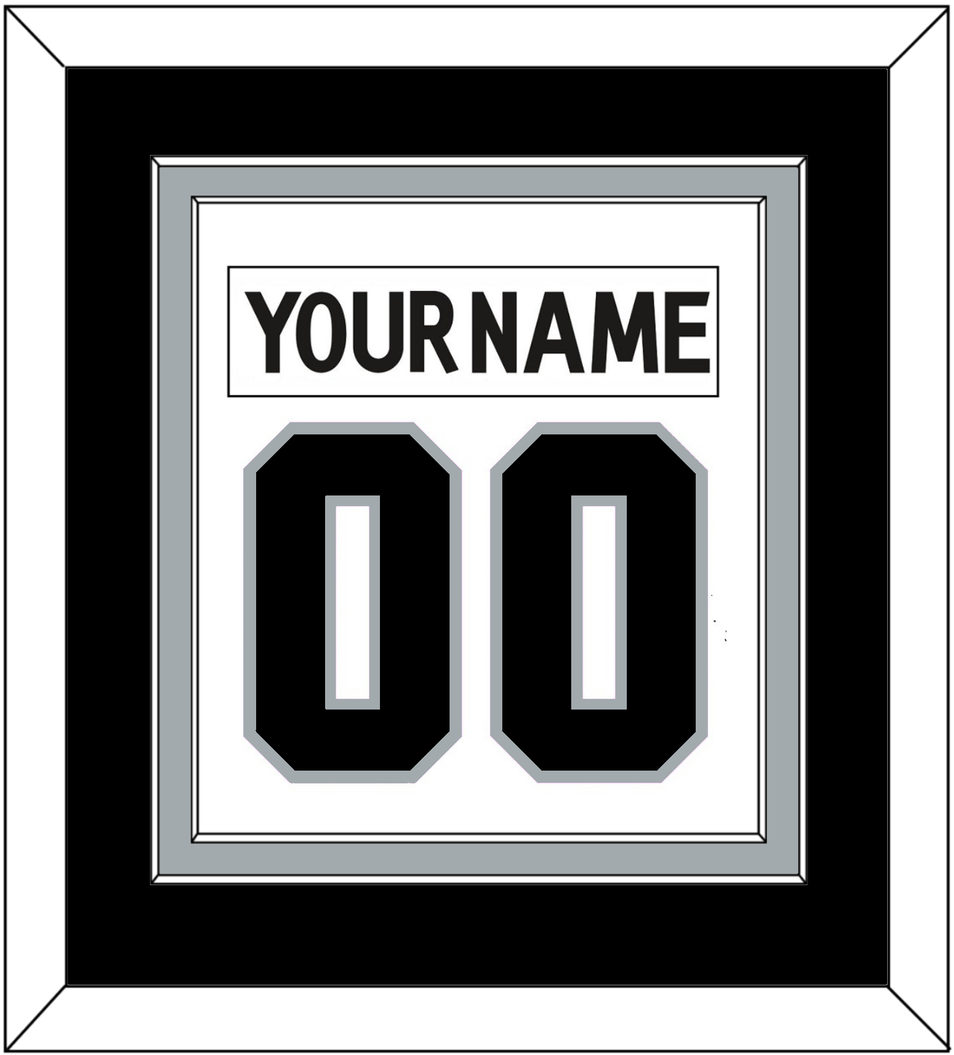 Los Angeles Road White Jersey (2017 Through 2024) Nameplate & Number (From The Back Of The Jersey). Double Mat Cut: Black Mat Over A Silver Mat. White Nameplate And Black Number Mounted On A White Mat. White Or Silver (Metal) Frame.