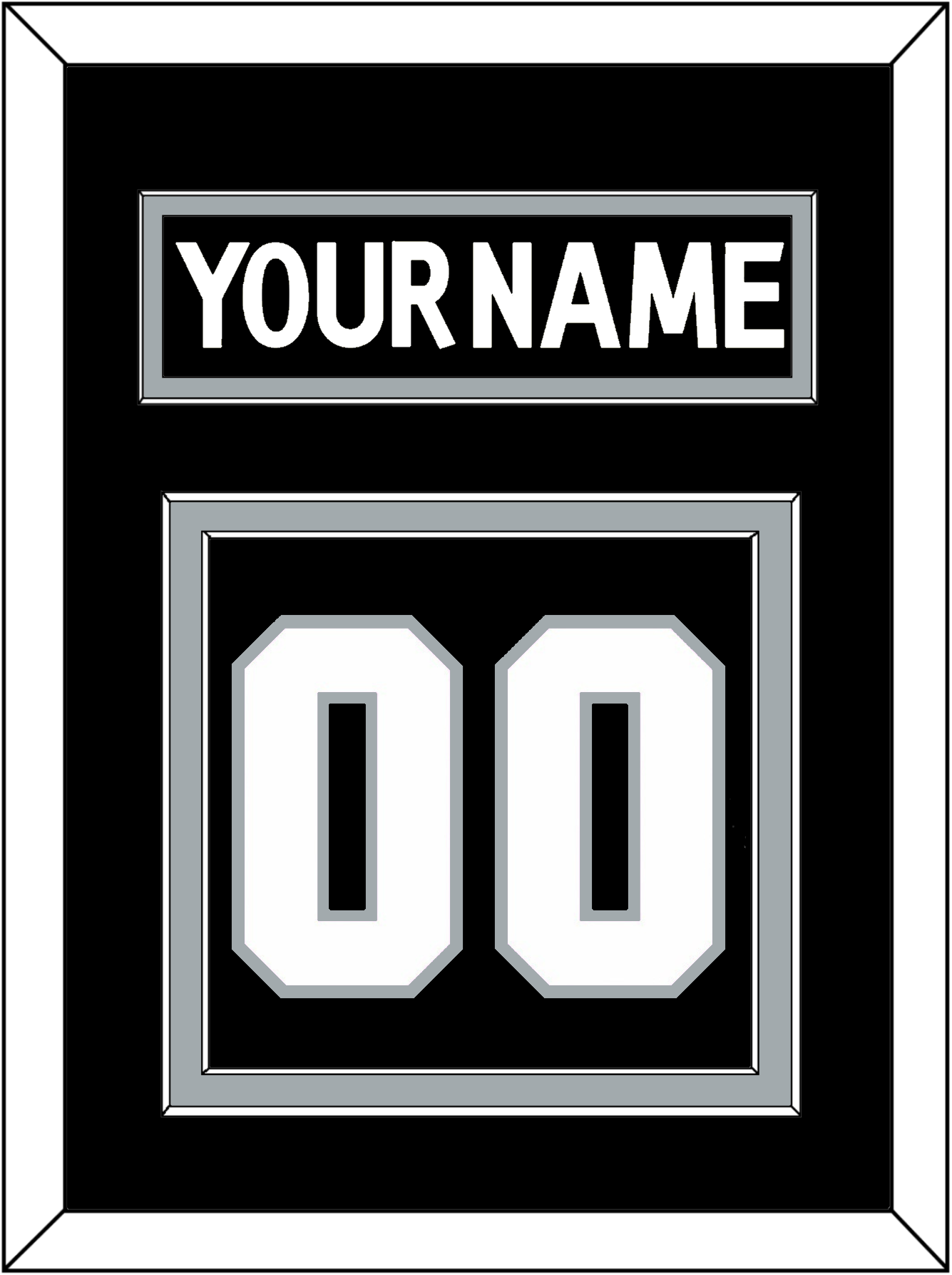Los Angeles Home Black Jersey (2011 Through 2017) Nameplate & Numbers (From The Back Of The Jersey). Nameplate Is Single Mat Cut: Black Mat With Black Nameplate Mounted On A Silver Mat. To Match The Jersey, Number Is Double Mat Cut: Black Mat Over A Silver Mat, White Number Mounted On A Black Mat. White Or Silver (Metal) Frame.