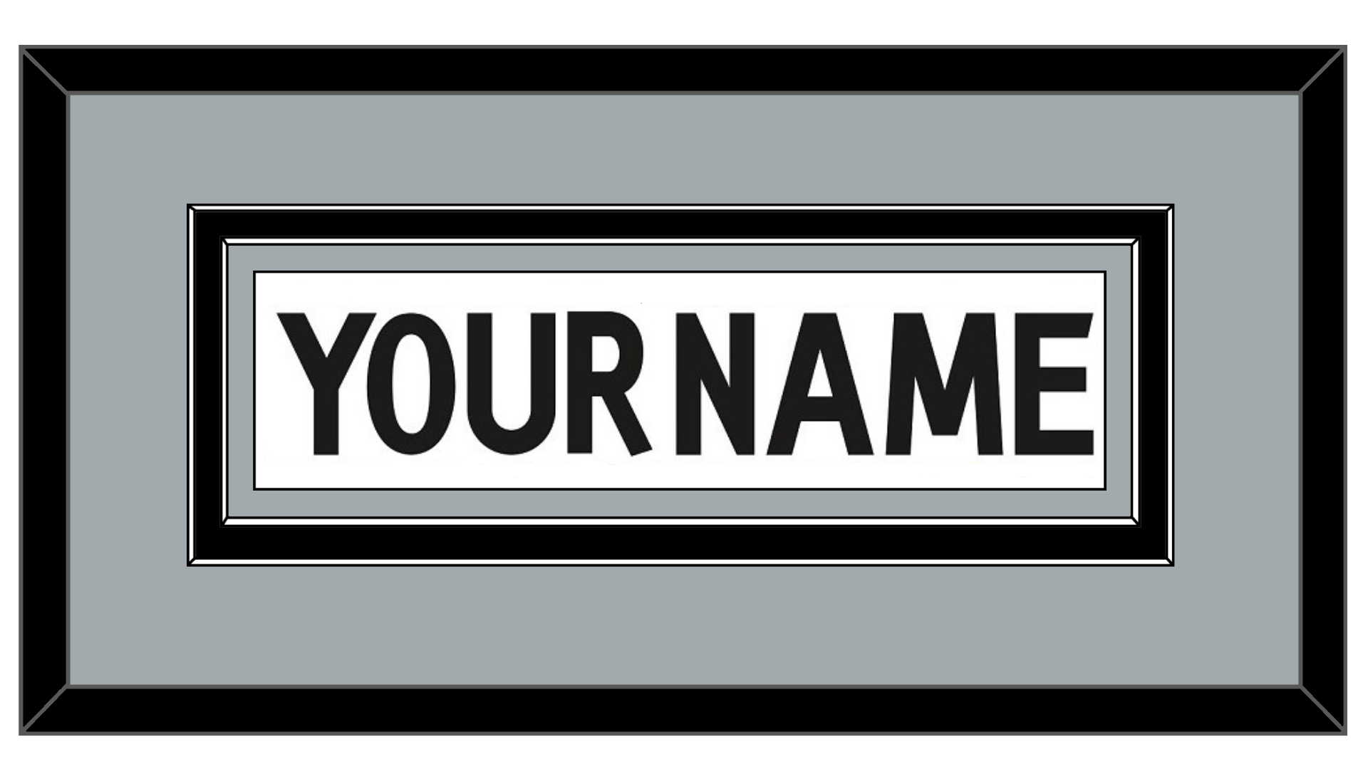 Los Angeles Road White Jersey (2011 Through 2017) Nameplate. Double Mat: Silver Mat Over A Black Mat, White Nameplate Mounted On A Silver Mat. Black Or White Frame.
