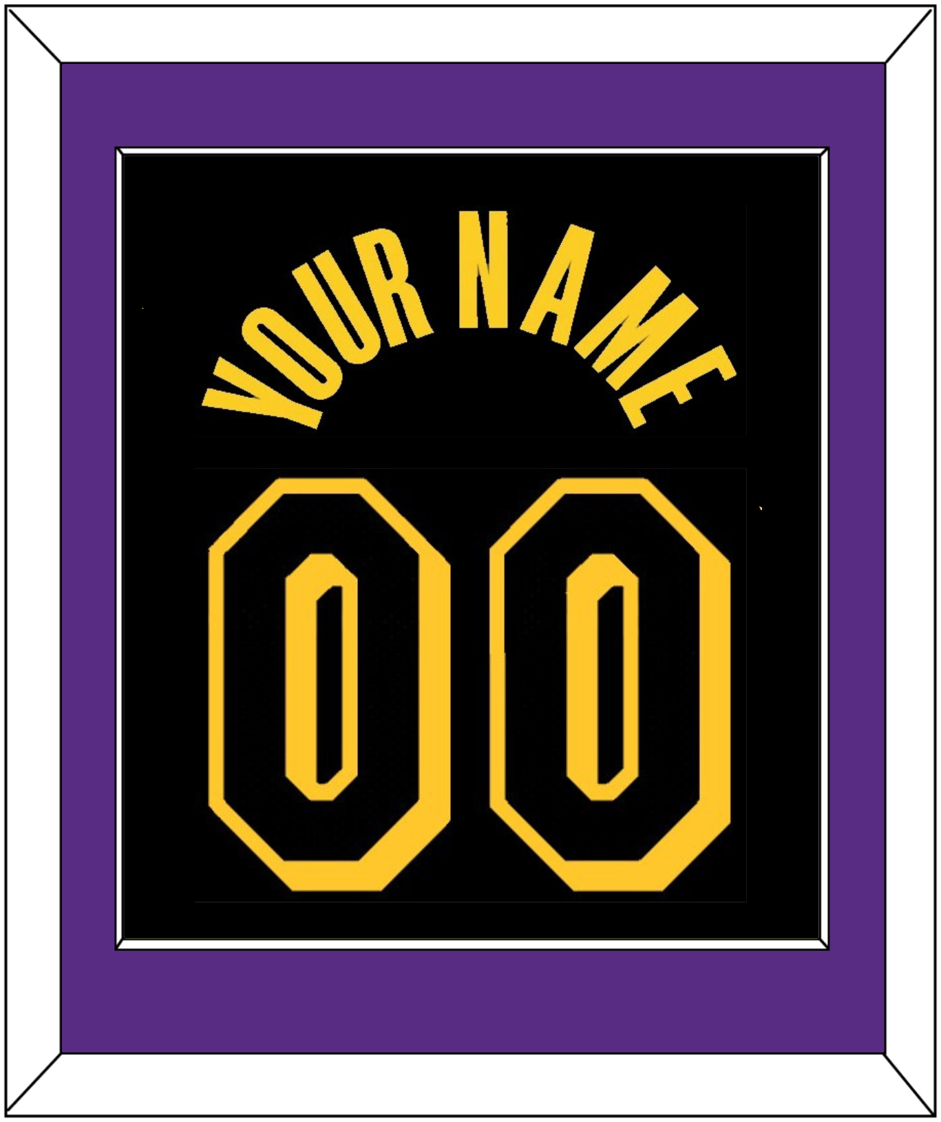 Los Angeles Black Mamba Jersey (2017 Through 2018 & 2020) Name & Number, Designed By Kobe Bryant In 2017. Purple Mat With Yellow Name And Black Number Mounted On Black Mat. Black Or White Frame.