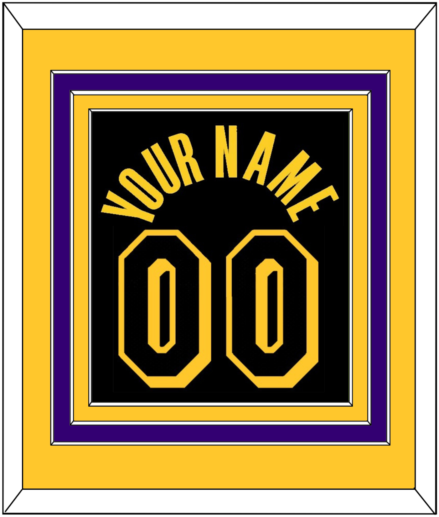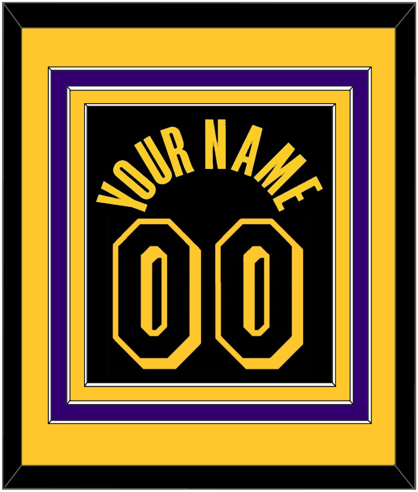 Los Angeles Black Mamba Jersey (2017 Through 2018 & 2020) Name & Number. Designed By Kobe Bryant In 2017. Yellow Mat Over A Purple Mat Over A Yellow Mat. Yellow Name And Black Number Mounted On Black Mat. Black Or White Frame.