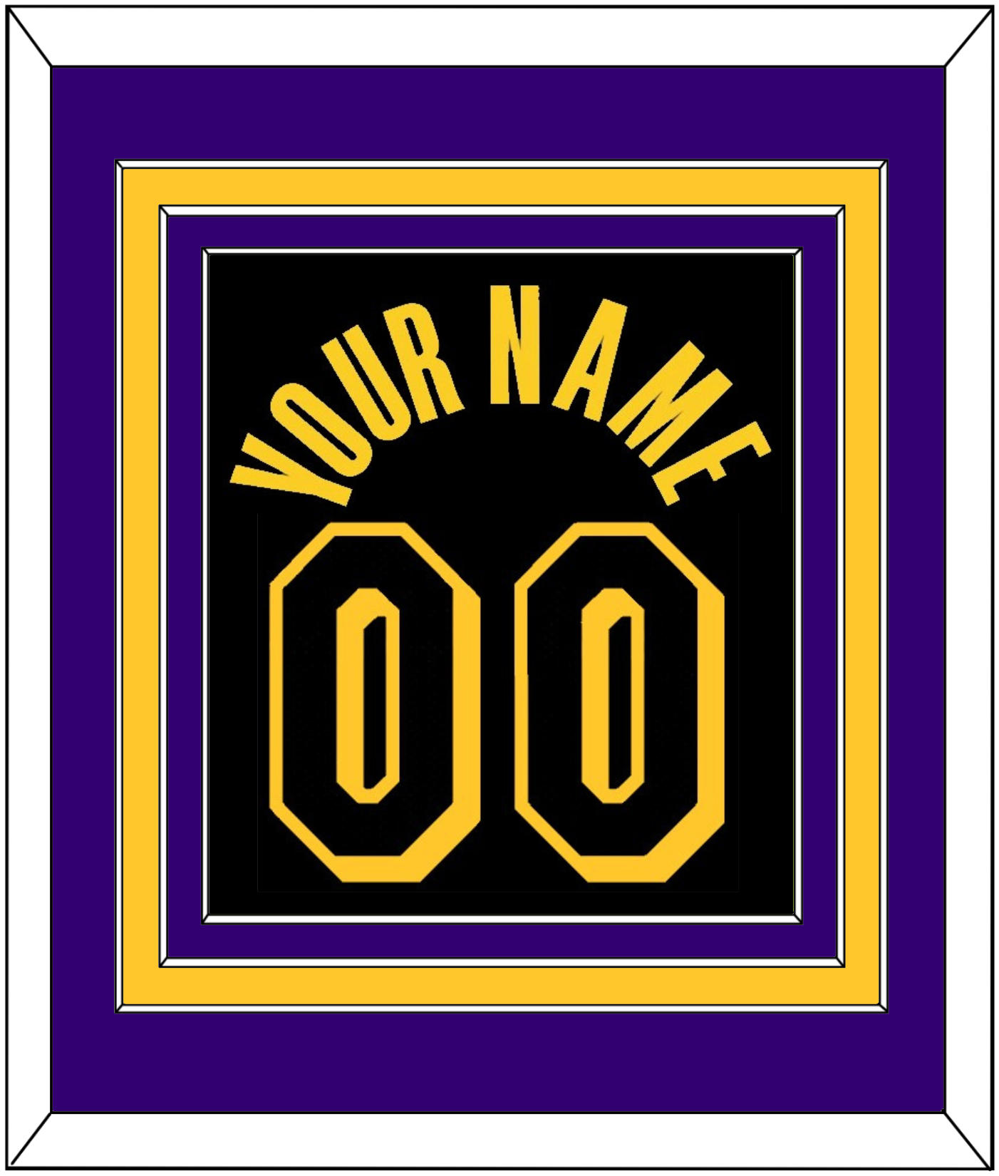 Los Angeles Black Mamba Jersey (2017 Through 2018 & 2020) Name & Number. Designed By Kobe Bryant In 2017. Purple Mat Over A Yellow Mat Over A Purple Mat. Yellow Name And Black Number Mounted On Black Mat. Black Or White Frame.