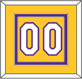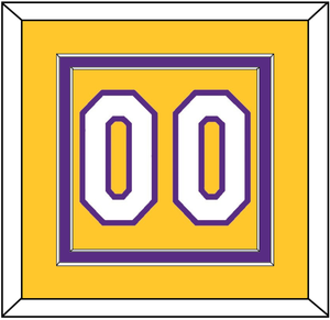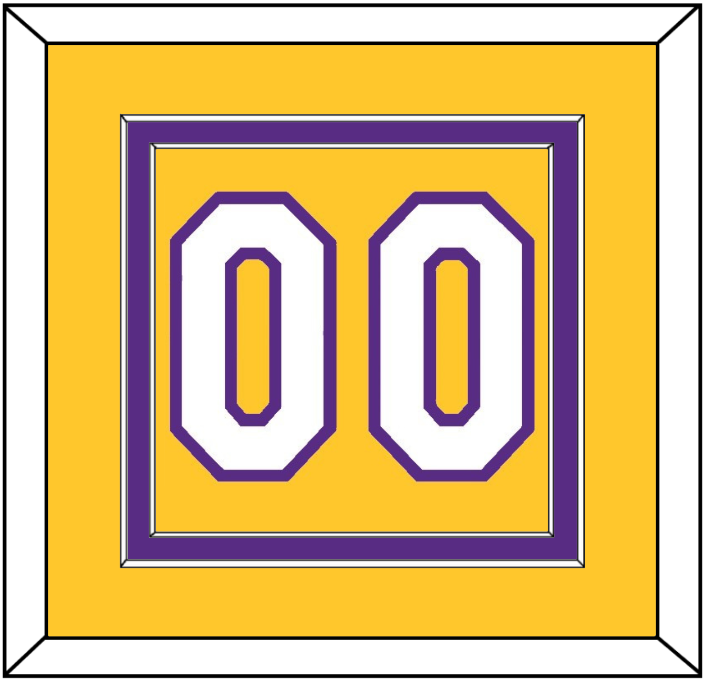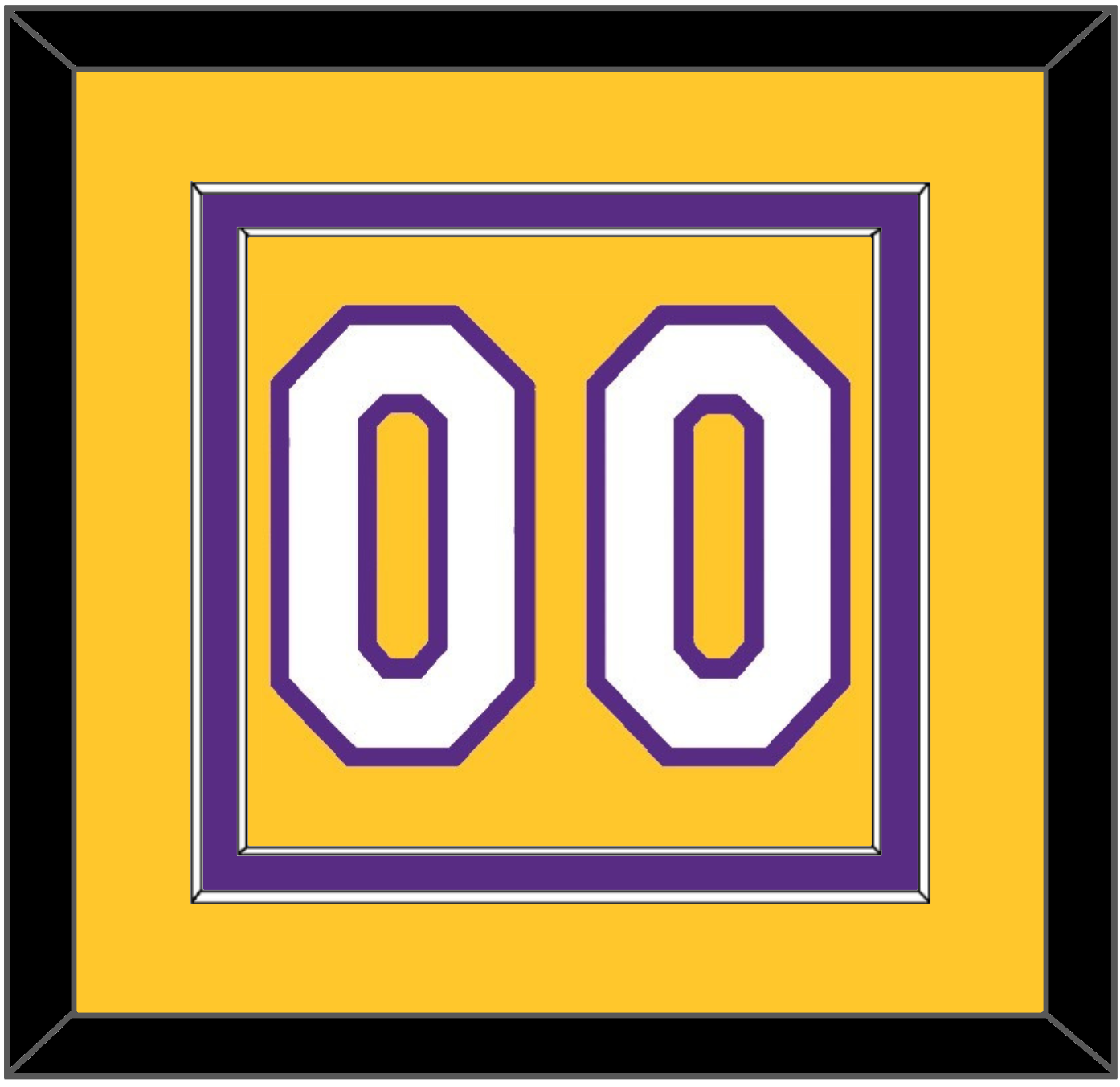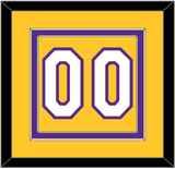 Los Angeles Home Yellow Jersey Number (1999 Through 2018). Double Mat Cut: Yellow Mat Over A Purple Mat. White Number Mounted On Yellow Mat. Black Frame.