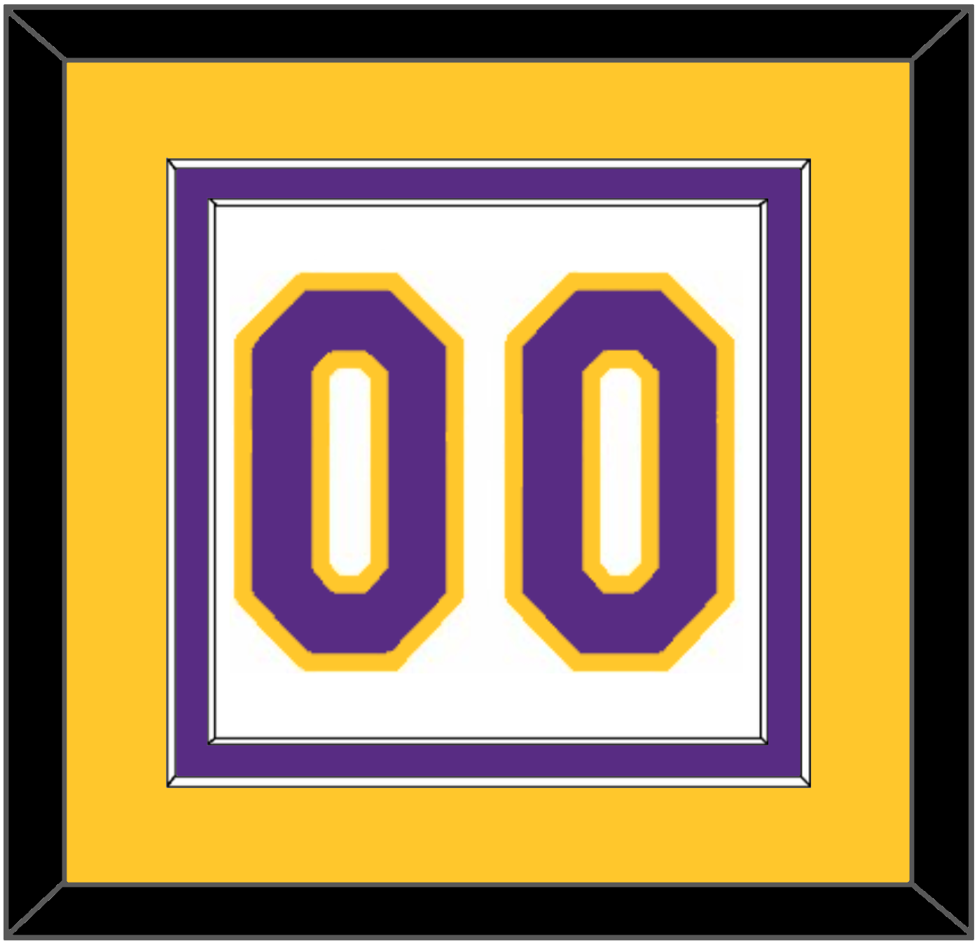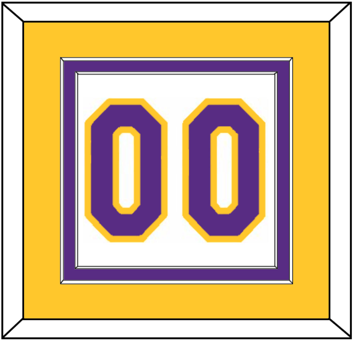 Los Angeles Home White Jersey Number (2002 Through 2018). Double Mat Cut: Yellow Mat Over A Purple Mat. Purple Number Mounted On White Mat. White Or Black Frame.