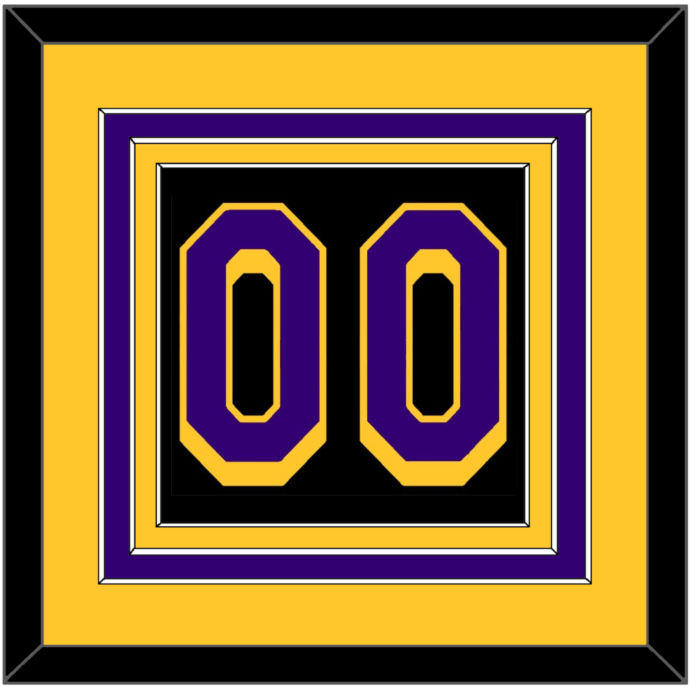 Los Angeles Black Earned Jersey (2020 Through 2021) Number. Triple Mat Cut: Yellow Mat Over A Purple Mat, Over A Yellow Mat. Purple Number Mounted On Black Mat. Black Or White Frame.