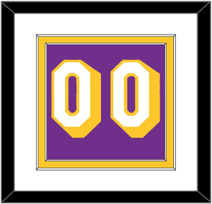 Los Angeles Road Purple Jersey Number (1978 Through 1997).  Double Mat Cut:  White Mat Over A Yellow Mat.  White Number Mounted On Purple Mat.  Black Frame.