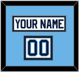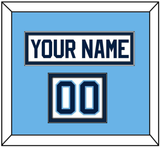 Maine Hockey Home White Jersey (1993 Through 1994) Nameplate & Numbers From Shoulder. The Nameplate Is Single Mat Cut: Light Blue Mat With White Nameplate Mounted On A Blue Mat. To Match The Jersey, Numbers Are Double Mat Cut. Light Blue Mat Over A Blue Mat. Navy Blue Numbers Mounted On A White Mat. White Or Black Frame.