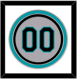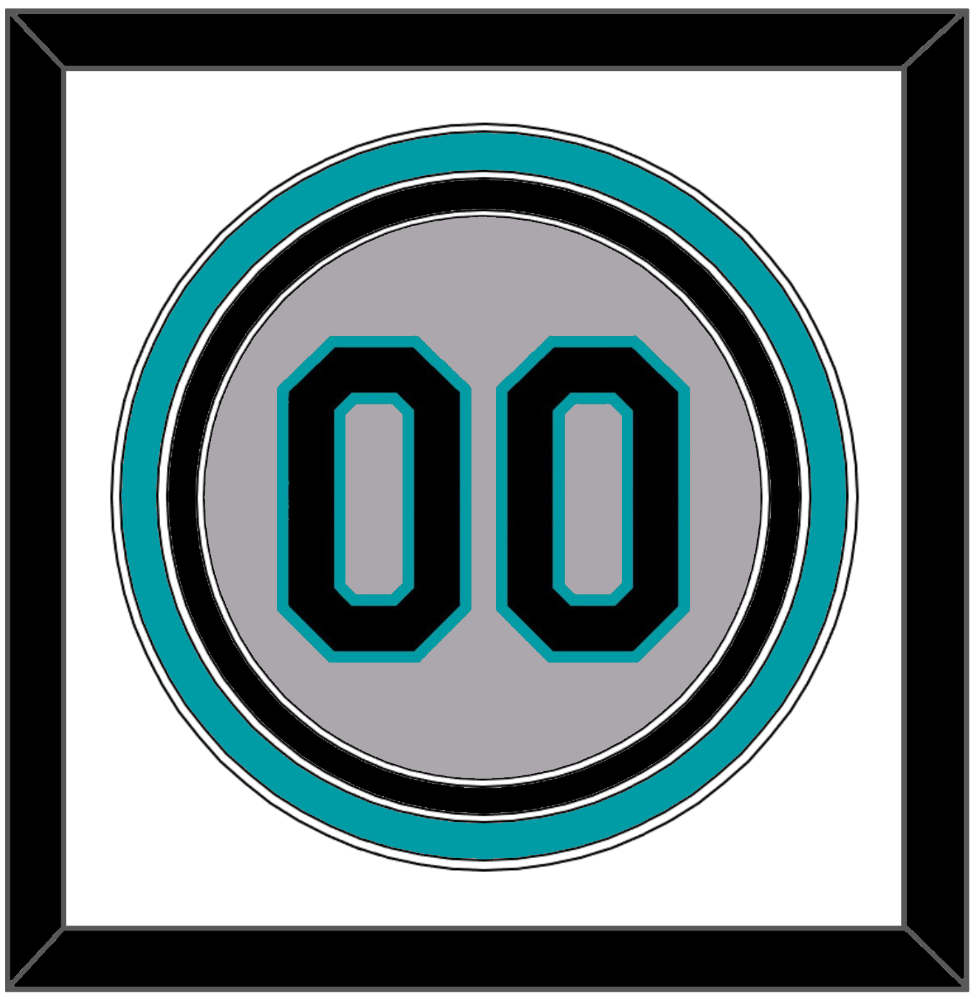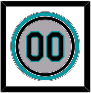 Florida Road Gray Jersey (1993 Through 2002) Numbers. Double Mat: White Mat Over A Teal Mat Over A Black Mat. Black Number Mounted On A Gray Mat. Black Frame.