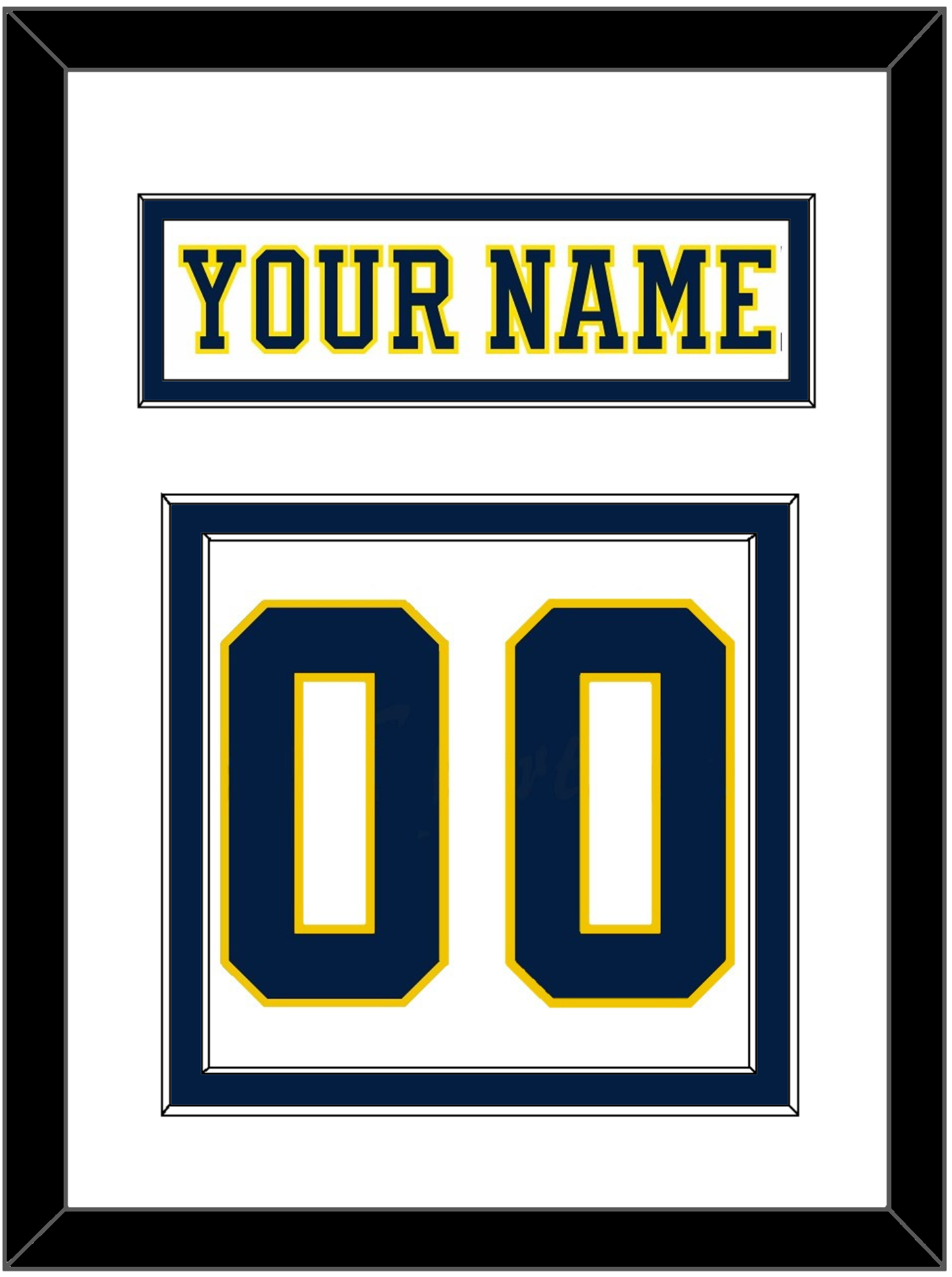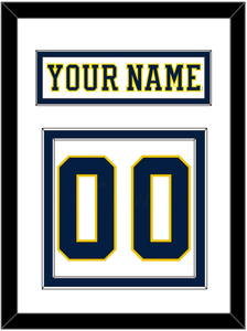 Michigan Home White Jersey (2019 Through 2020) Nameplate & Numbers (From The Back Of The Jersey). Nameplate Is Single Mat Cut: White Mat With White Nameplate Mounted On A Blue Mat. To Match The Jersey, Number Is Double Mat Cut: White Mat Over A Blue Mat, Blue Number Mounted On A White Mat. Black Frame.