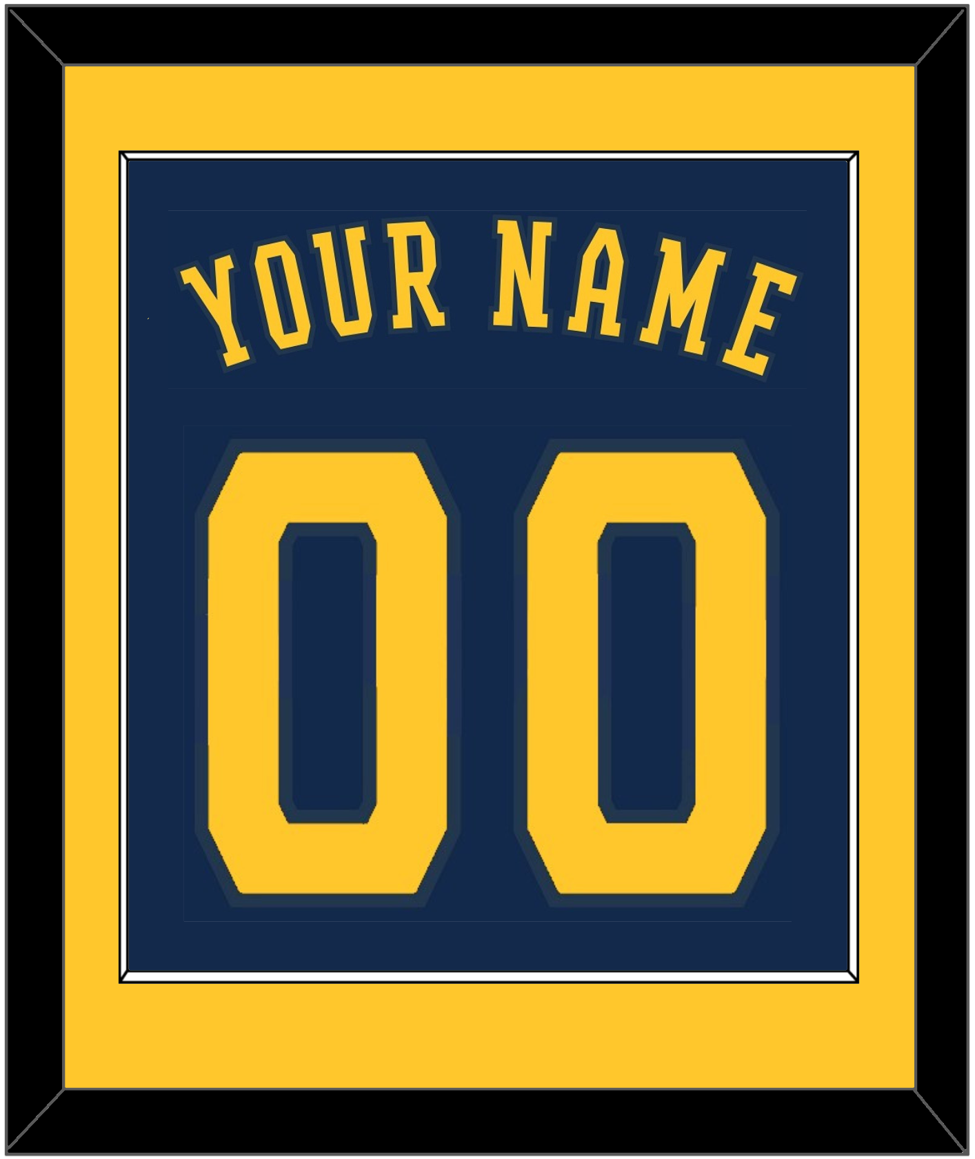 Milwaukee Alternate Road Navy Jersey Name & Number. Single Mat: Yellow Mat With Yellow Name And Number Mounted On A Blue Mat. White Black Frame.