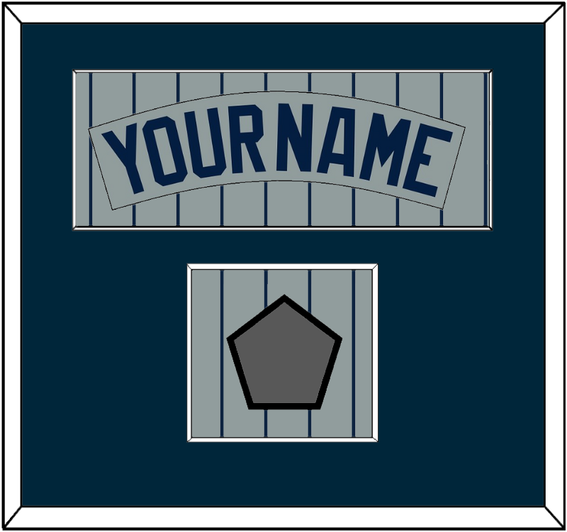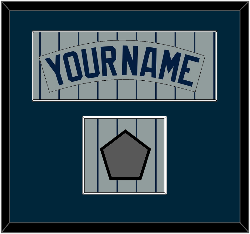 Minnesota Road Gray Pinstripes Jersey (1987 Through 2009) Nameplate & 1987 World Series Champions Patch. Single Mat: Blue Mat With Gray Nameplate & Patch Mounted On Pinstripes. White Or Black Frame.