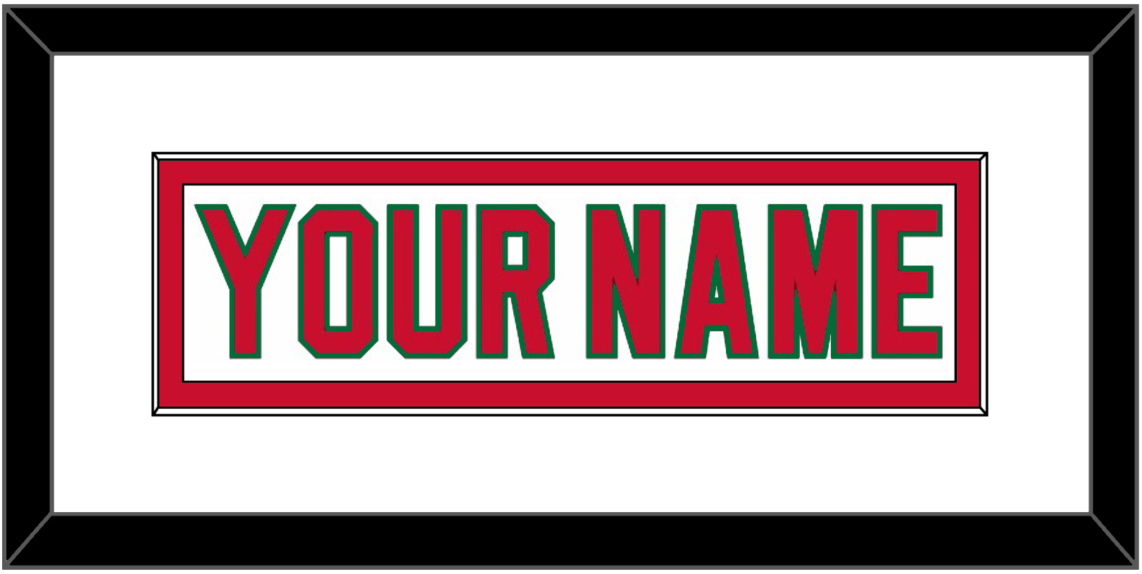 New Jersey Home White Jersey (1982 Through 1992) Nameplate. Single Mat: White Mat, White Nameplate Mounted On A Red Mat. Black Frame.