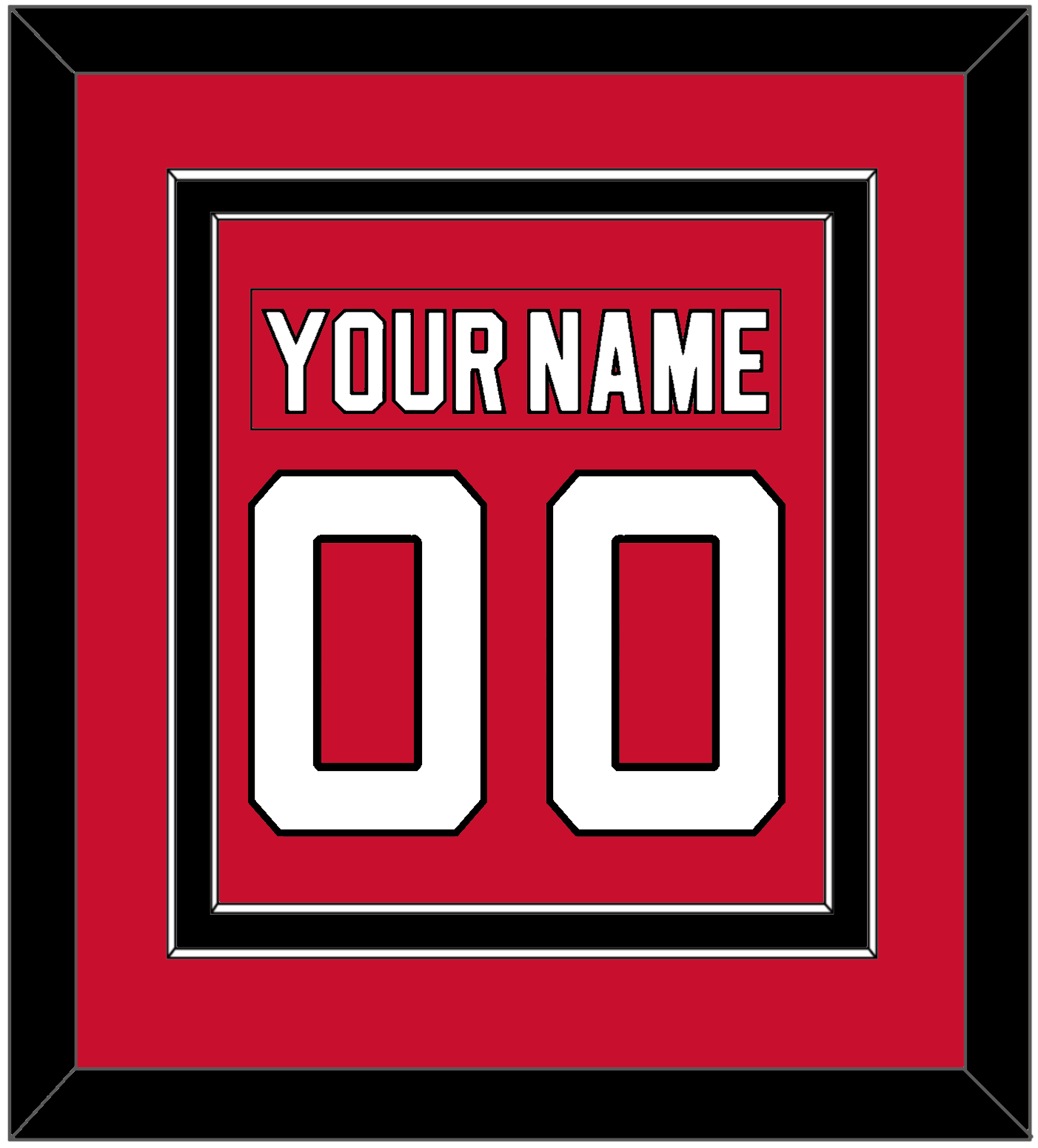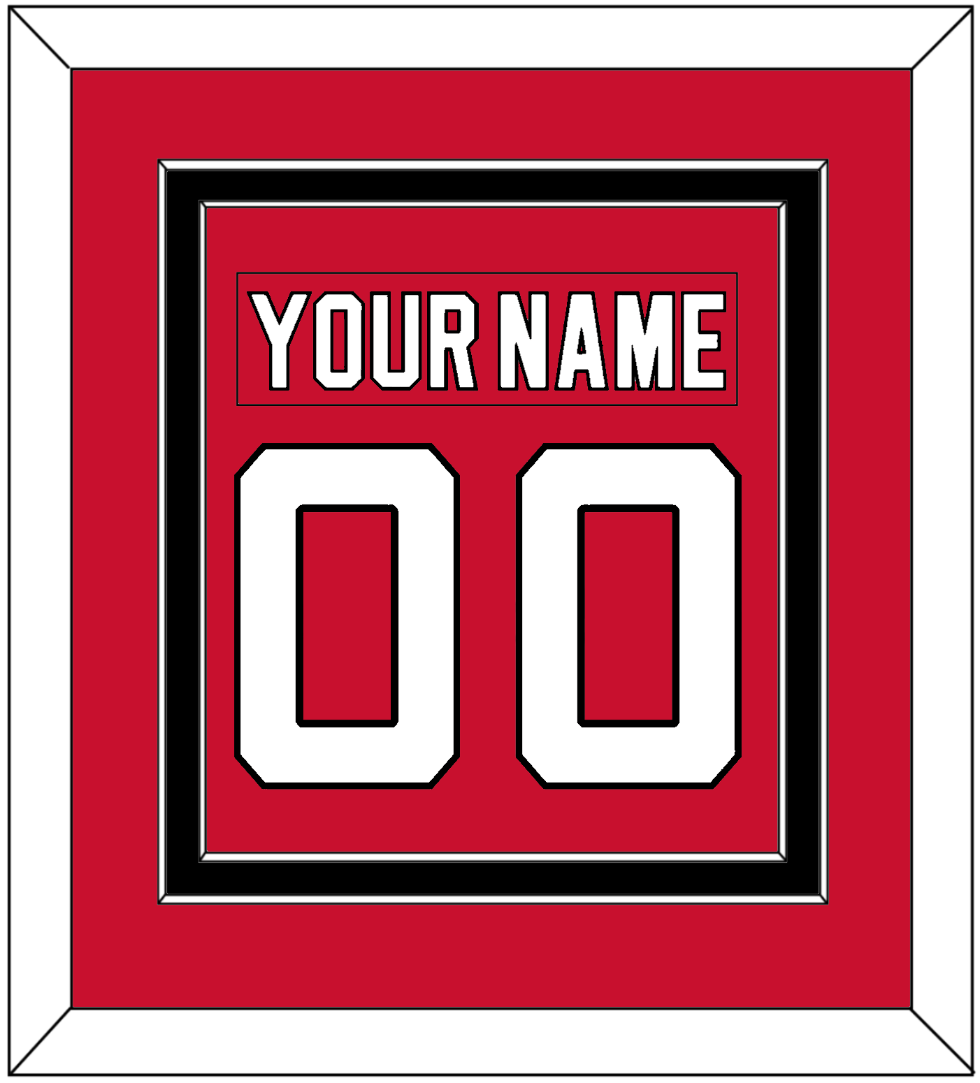 New Jersey Home Red Jersey (2007 Through 2017) Nameplate & Number (From The Back Of The Jersey). Double Mat Cut: Red Mat Over A Black Mat. Red Nameplate And White Number Mounted On A Red Mat. Black Or White Frame.