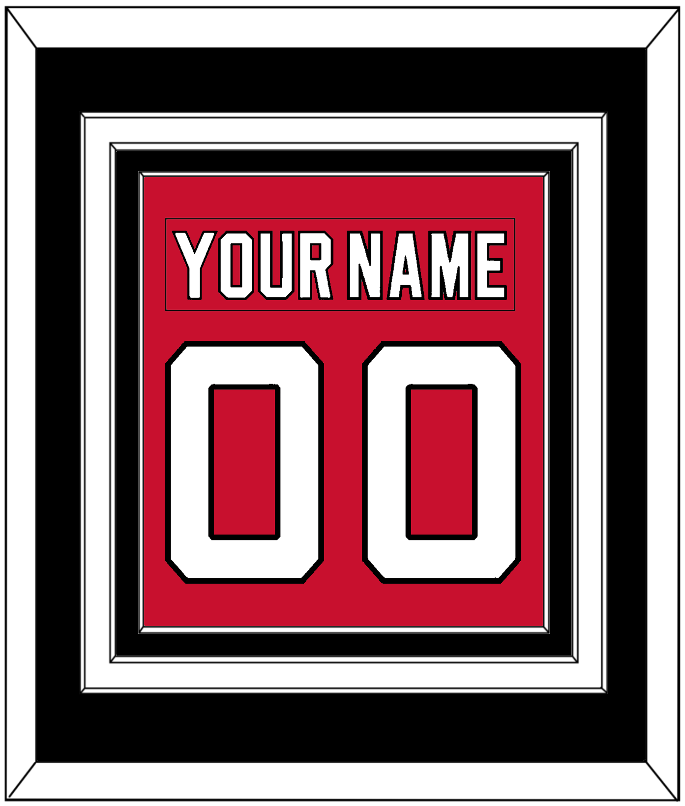 New Jersey Home Red Jersey (2007 Through 2017) Nameplate & Number (From The Back Of The Jersey). Triple Mat Cut: Black Mat Over A White Mat Over A Black Mat. Red Nameplate And White Number Mounted On A Red Mat. White Frame.