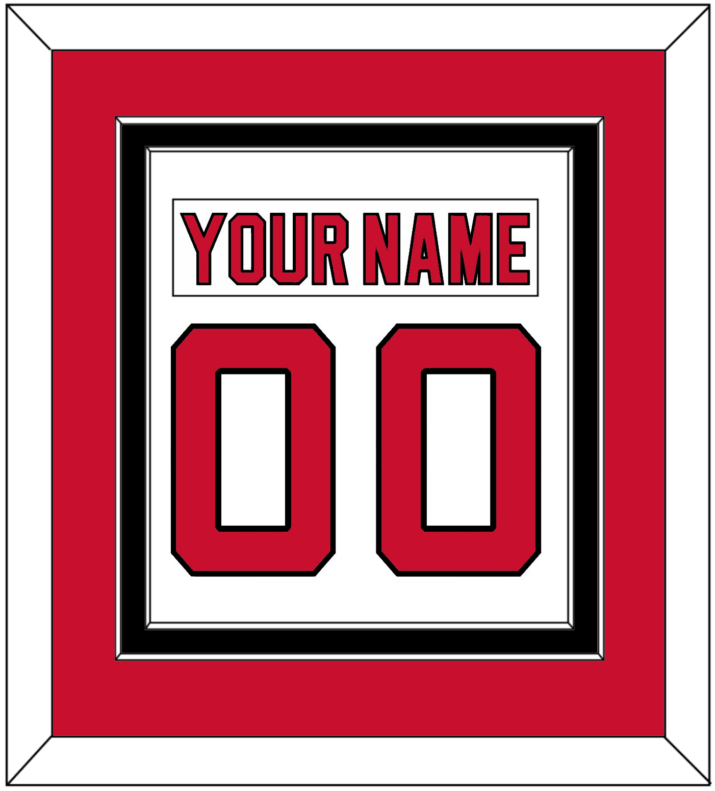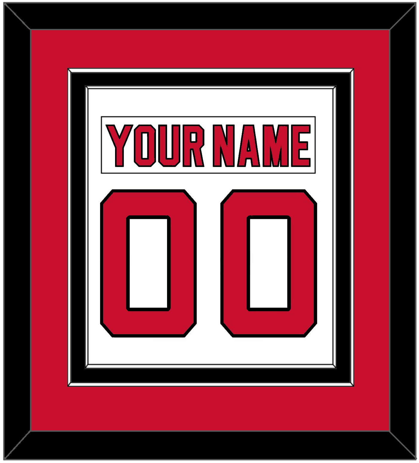 New Jersey Home White Jersey (1992 Through 2007) Nameplate & Number (From The Back Of The Jersey). Double Mat Cut: Red Mat Over A Black Mat. White Nameplate And Red Number Mounted On A White Mat. Black Or White Frame.