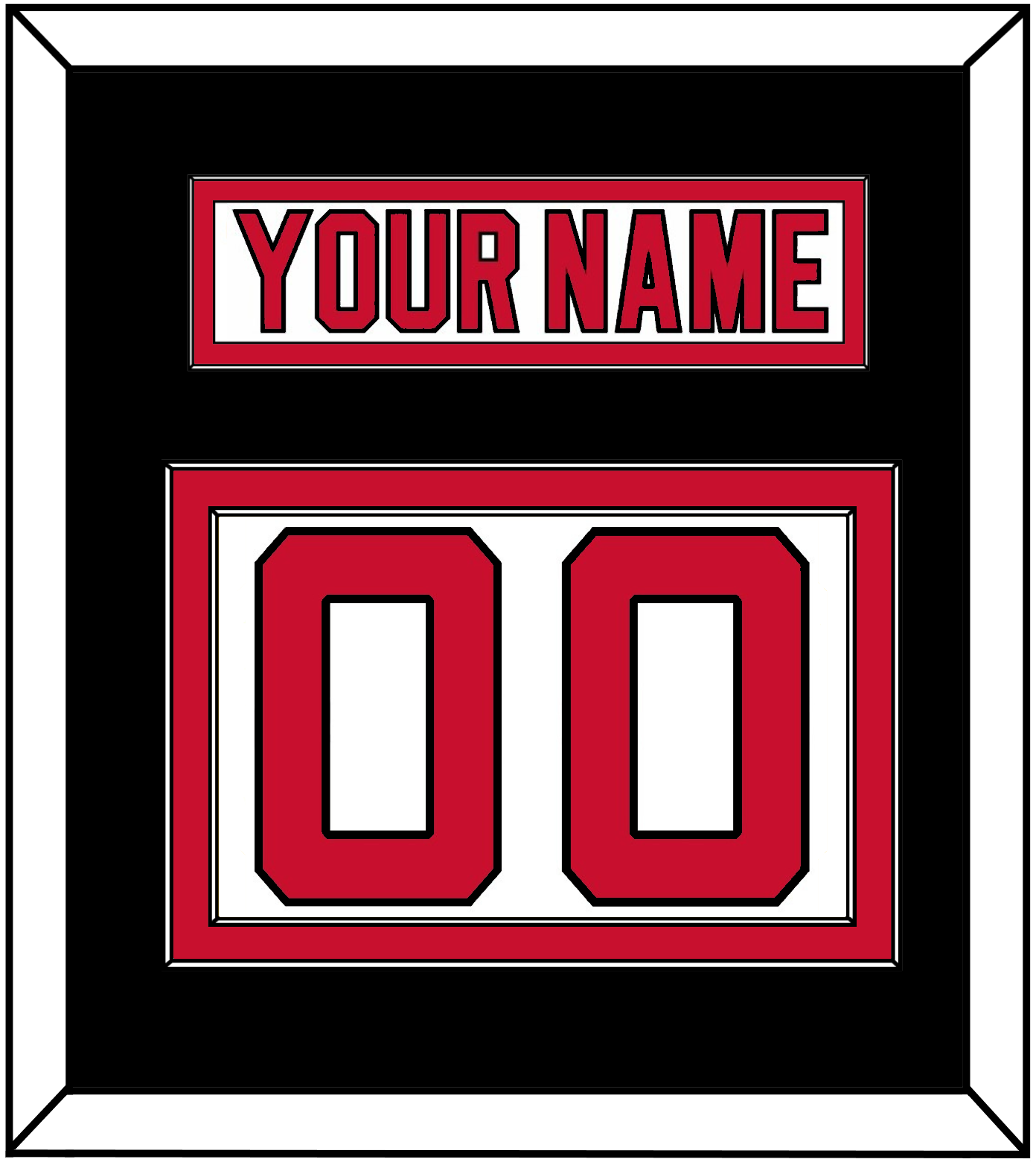 New Jersey Home White Jersey (1992 Through 2007) Nameplate & Numbers (From The Back Of The Jersey). Nameplate Is Single Mat Cut: Black Mat With White Nameplate Mounted On A Red Mat. To Match The Jersey, Number Is Double Mat Cut: Black Mat Over A Red Mat, Red Number Mounted On A White Mat. White Frame.
