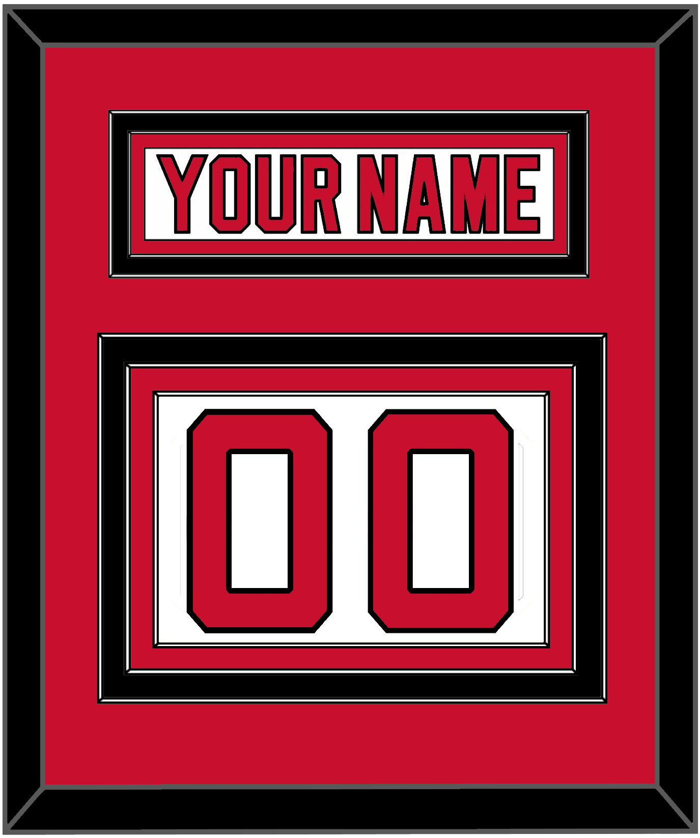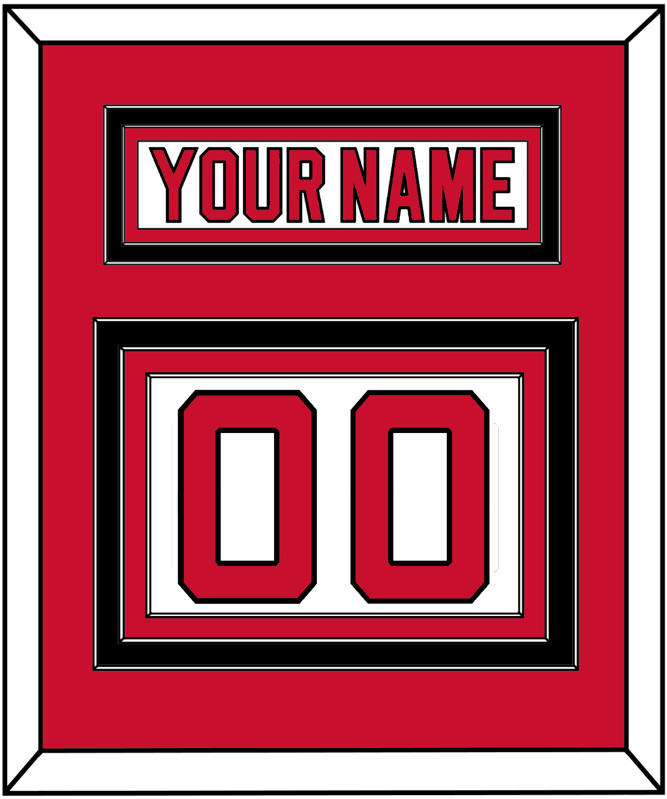 New Jersey Roaf White Jersey (2007 Through 2017) Nameplate & Numbers (From The Back Of The Jersey). Nameplate Is Double Mat Cut: Red Mat Over A Black Mat. White Nameplate Mounted On A Red Mat. To Match The Jersey, Number Is Triple Mat Cut: Red Mat Over A Black Mat Over A Red Mat, Red Number Mounted On A White Mat. Black Or White Frame.