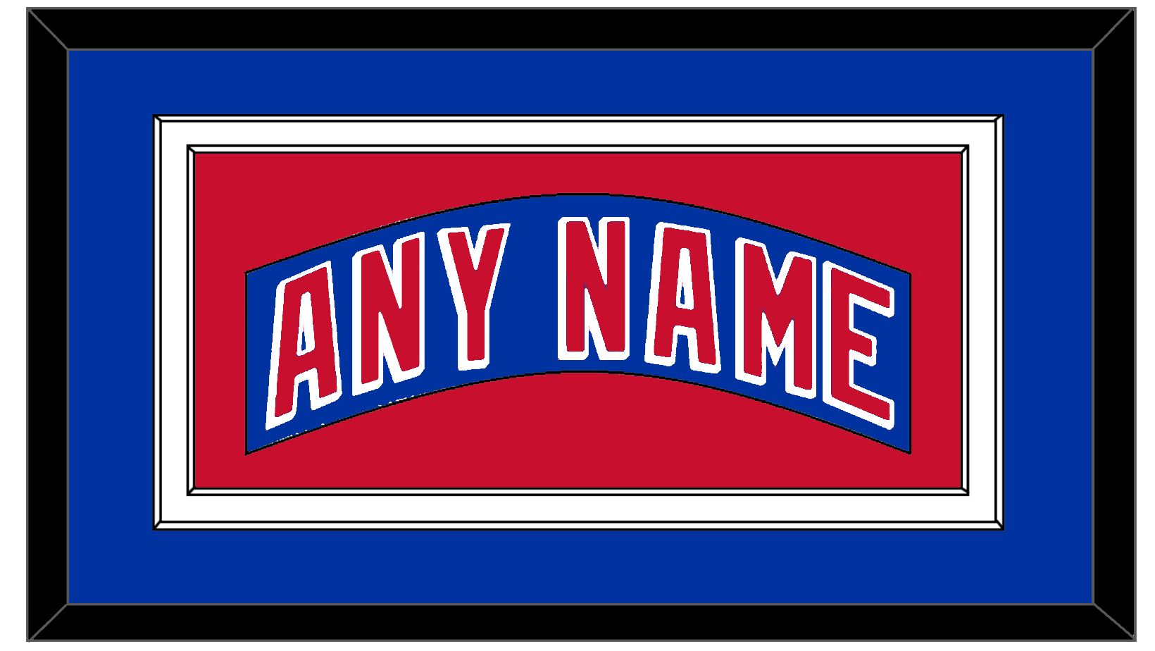 New York Home Blue Jersey (2004 Through 2017) Nameplate. Double Mat: Blue Mat Over White Mat, Blue Nameplate Mounted On Red Mat. White Or Black Frame.