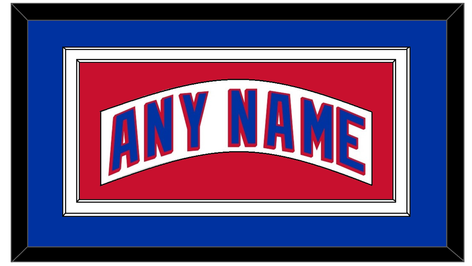 New York Road White Jersey (2004 Through 2017) Nameplate. Double Mat: Blue Mat Over White Mat, White Nameplate Mounted On Red Mat. White Or Black Frame.