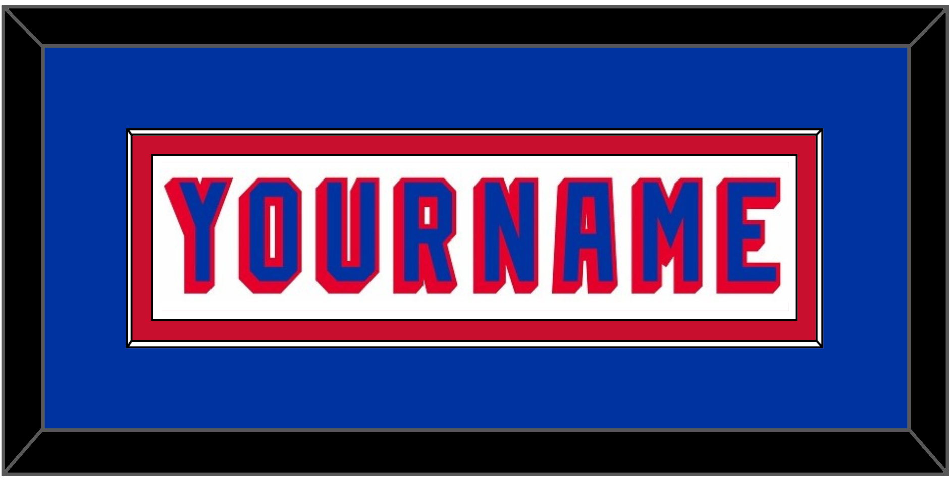 New York Home White Jersey (1978 Through 1990) Nameplate. Single Mat: Blue Mat, White Nameplate Mounted On Red Mat. White Or Black Frame.