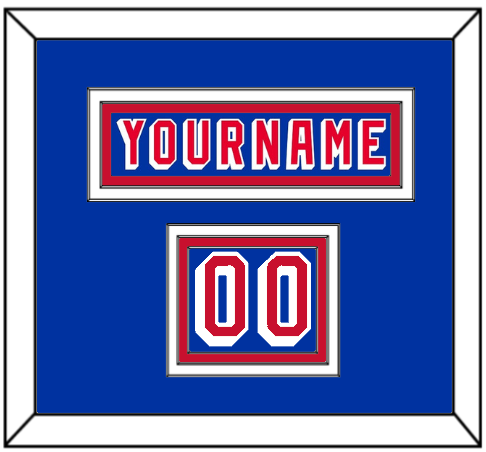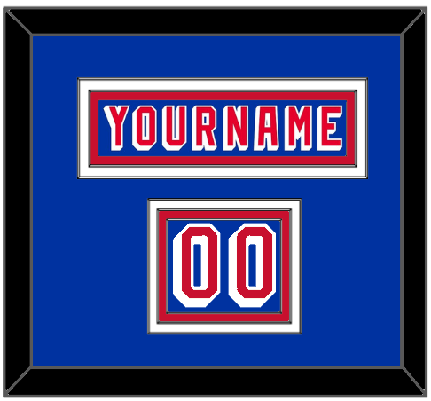 New York Road Blue Jersey (1978 Through 1990) Nameplate & Numbers From Shoulder - The Nameplate Is Double Mat Cut: Blue Mat Over A White Mat, Blue Nameplate Mounted On Red Mat. To Match The Jersey, The Numbers Are Triple Mat Cut: Blue Mat Over A White Mat Over Red Mat, Red Numbers Mounted On A Blue Mat. White Or Black Frame.