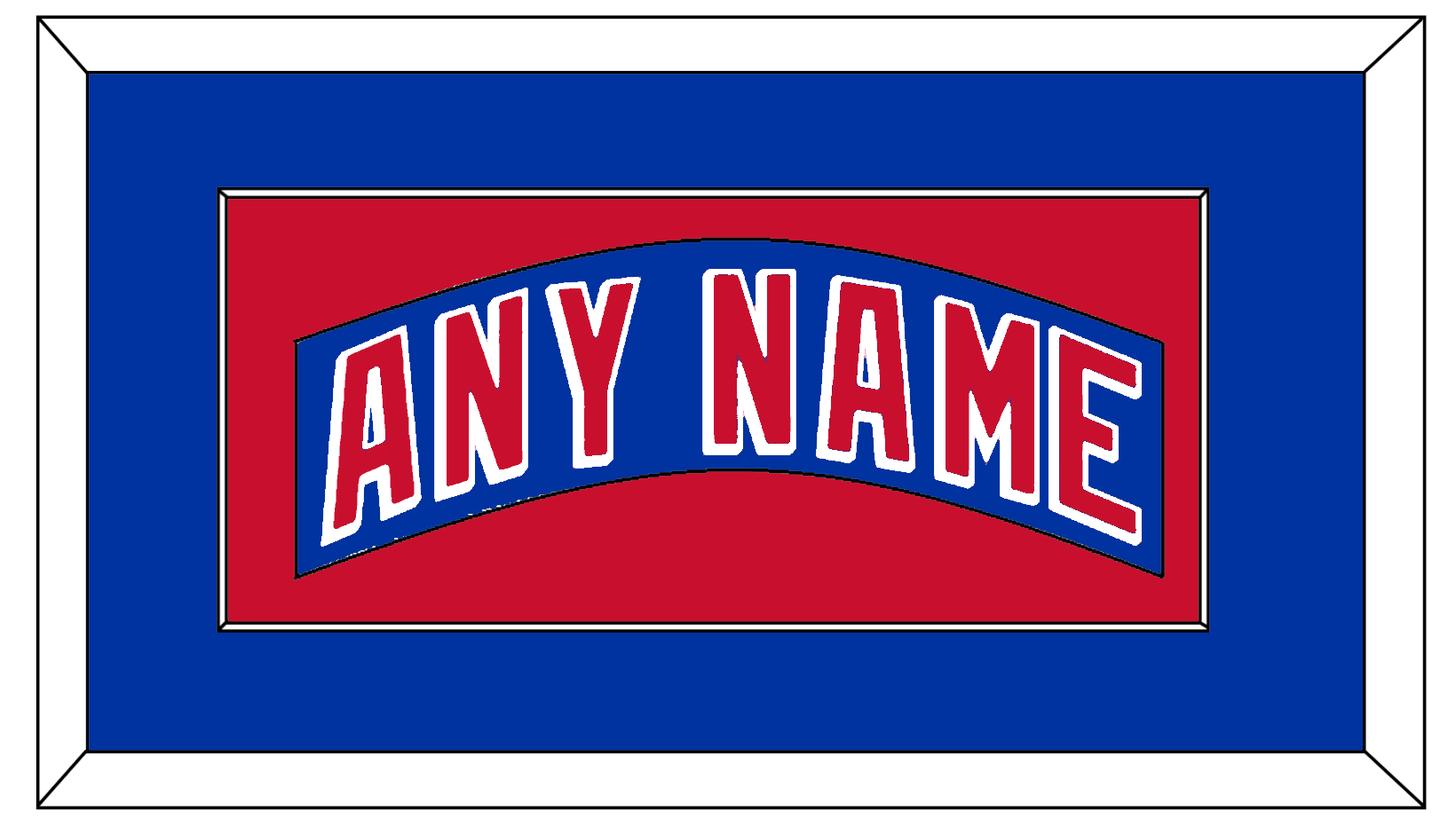 New York Road Blue Jersey (1990 Through 2004) Nameplate. Single Mat: Blue Mat, Blue Nameplate Mounted On Red Mat. White Or Black Frame.