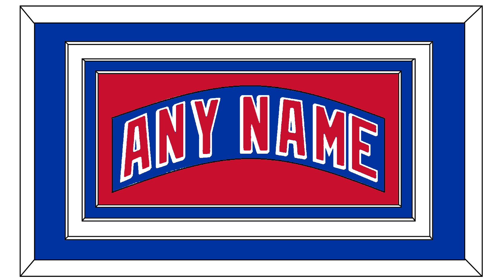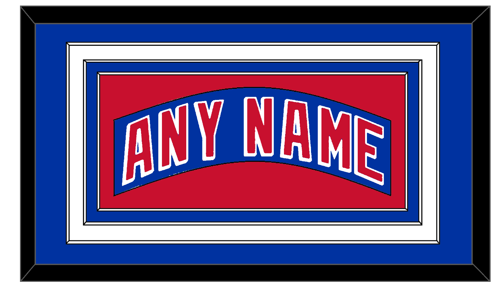 New York Road Blue Jersey (1990 Through 2004) Nameplate. Triple Mat: Blue Mat Over White Mat Over A Blue Mat, Blue Nameplate Mounted On A Red Mat. White Or Black Frame.