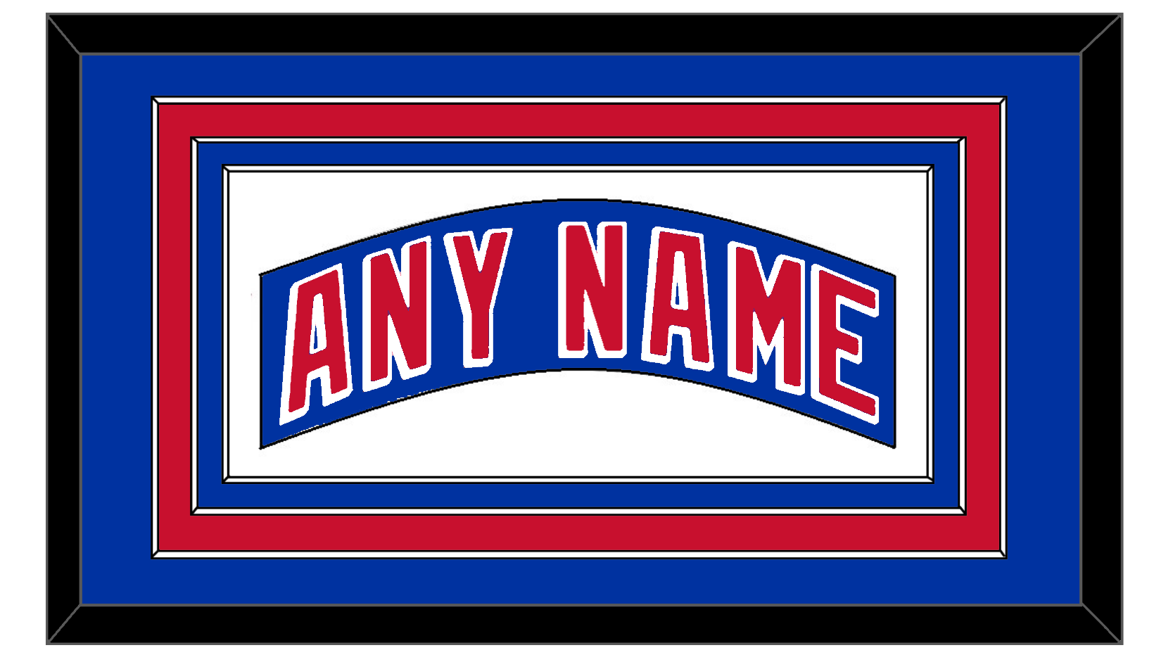 New York Road Blue Jersey (1990 Through 2004) Nameplate. Triple Mat: Blue Mat Over Red Mat Over A Blue Mat, Blue Nameplate Mounted On A White Mat. White Or Black Frame.