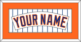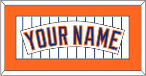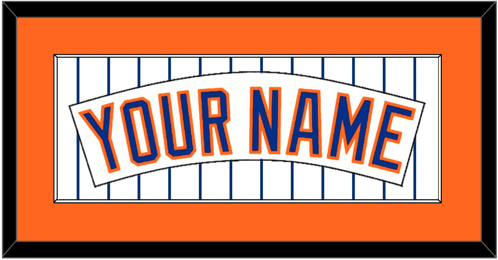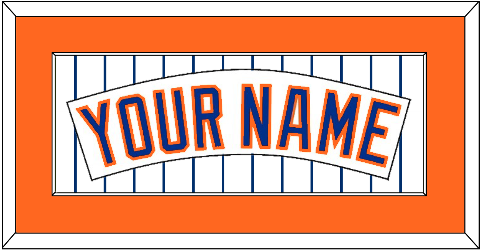 New York Home Pinstripes Jersey (1983 Through 1986) Nameplate. Single Mat: Orange Mat With White Nameplate Mounted On Pinstripes. White Or Black Frame.
