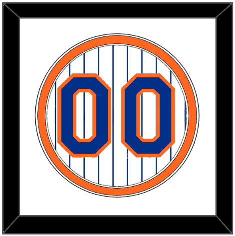 New York Home White Pinstripe Jersey (1983 Through 1990) Number. Double Mat: White Mat Over An Orange Mat With Blue Numbers Mounted On Pinstripe Background. Black Frame.