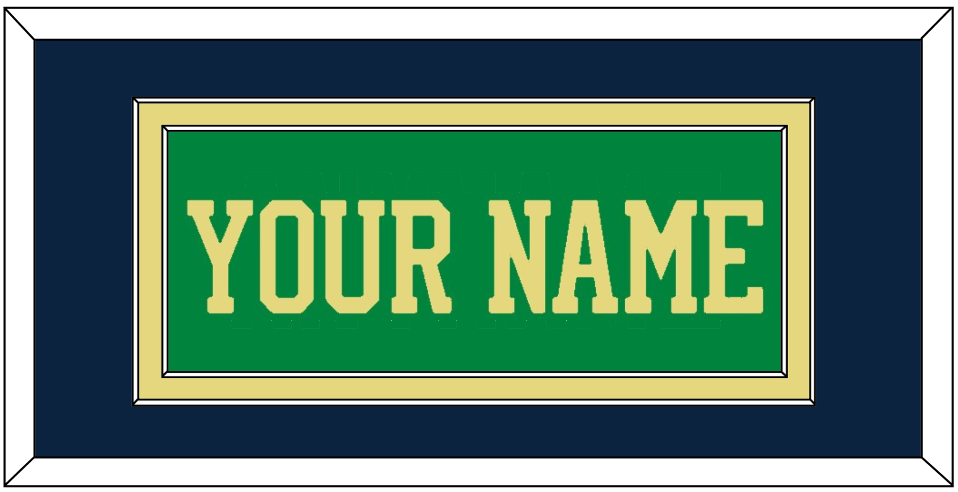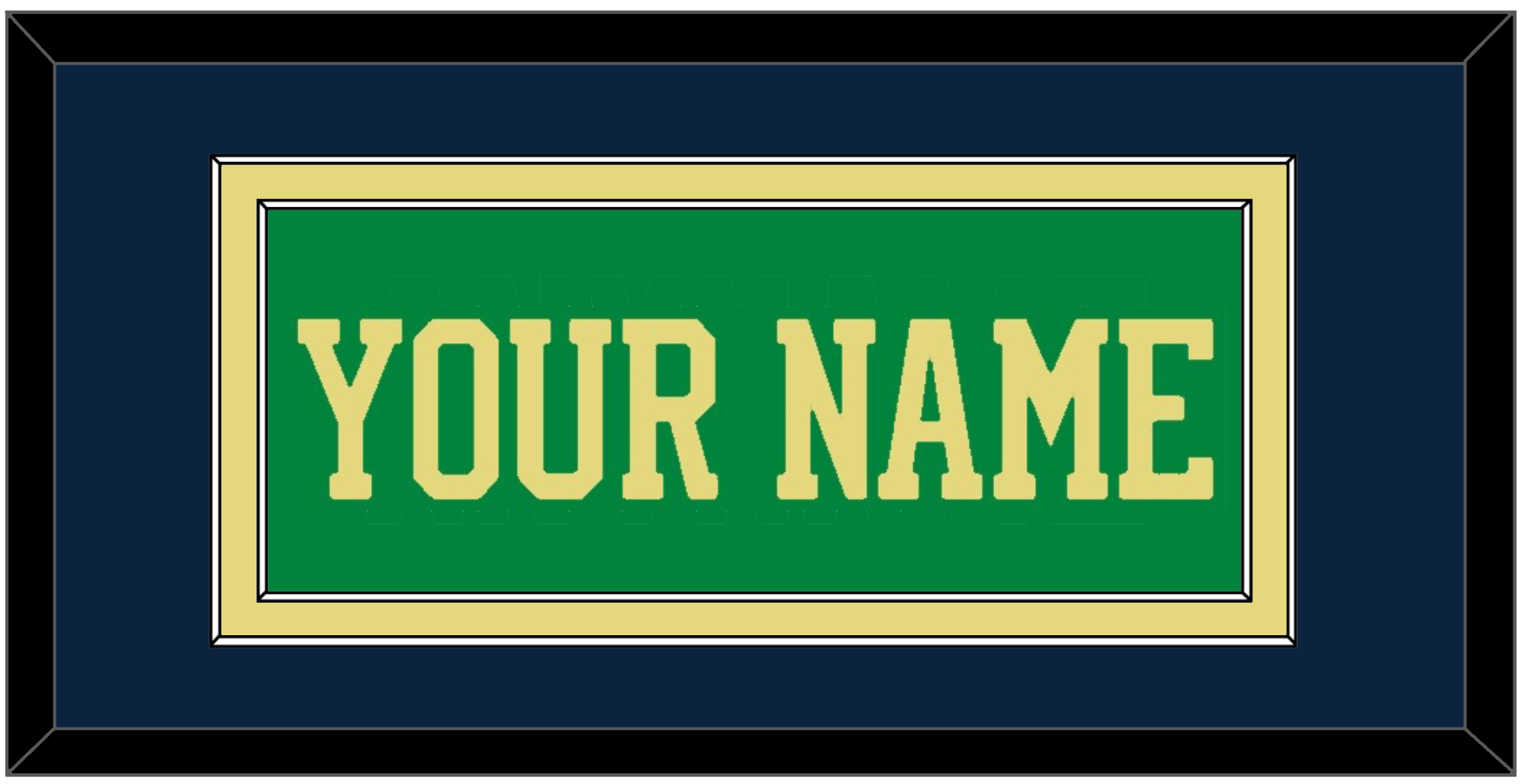 Notre Dame Basketball Alternate Green Jersey (2016 Through 2017) Name. Double Mat: Blue Mat Over A Gold Mat. Blue Name Mounted On A Green Mat. White Or Black Frame.