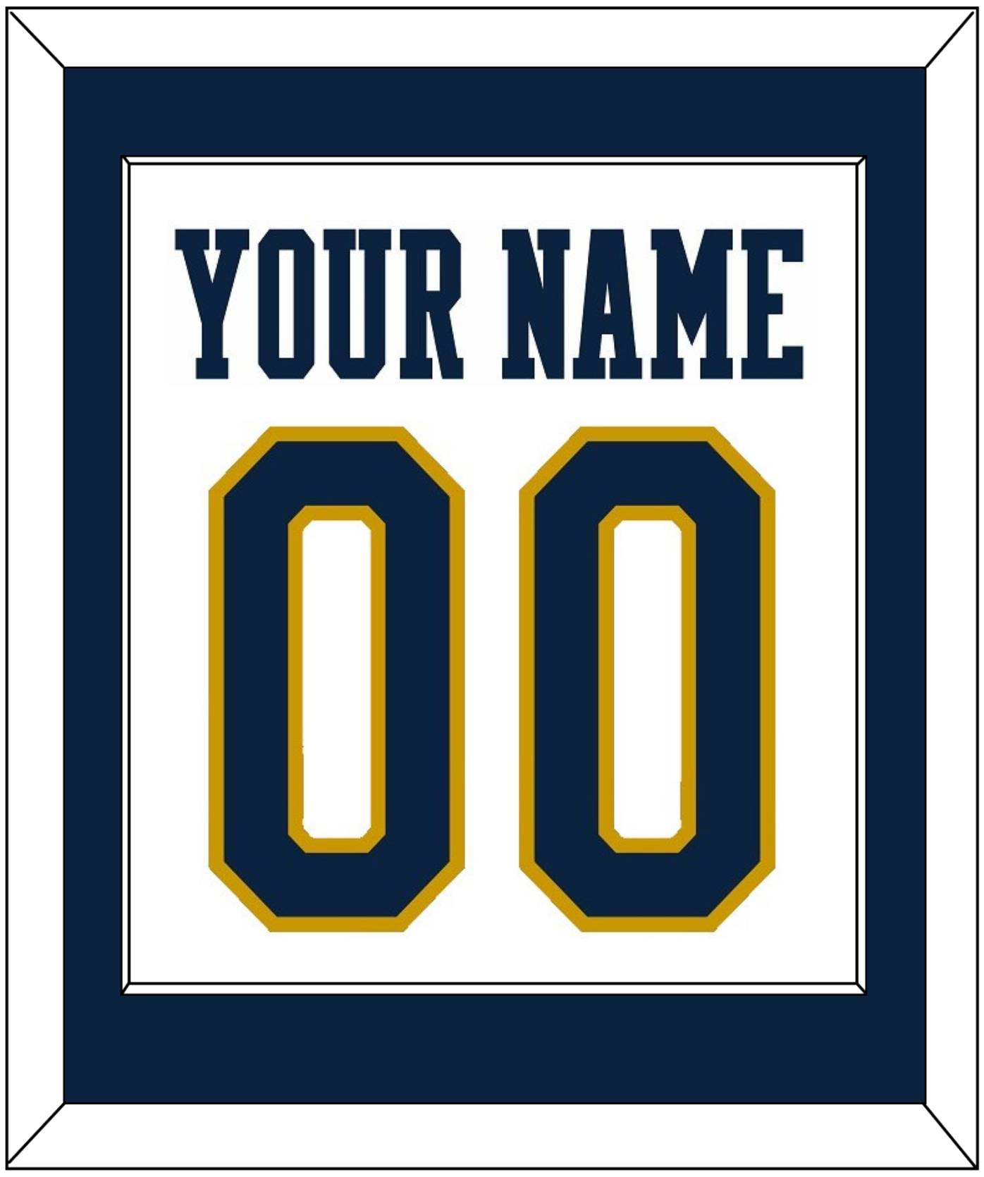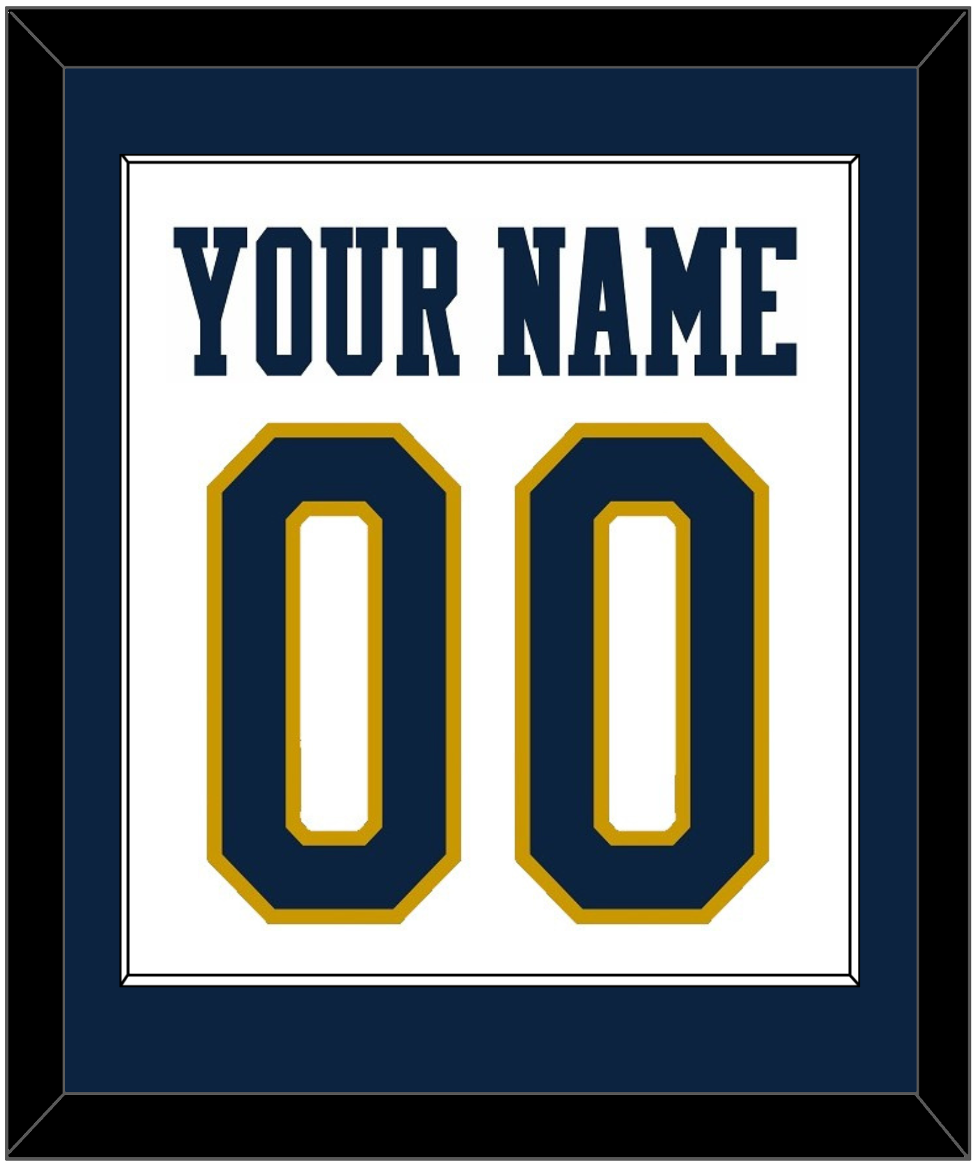 Notre Dame Basketball Home White Jersey Name & Number. Single Mat: Blue Mat, With Blue Name & Number Mounted On A White Mat. White Or Black Frame.