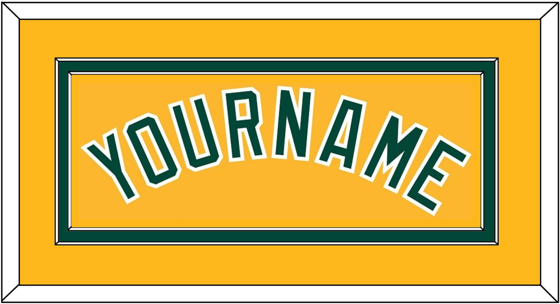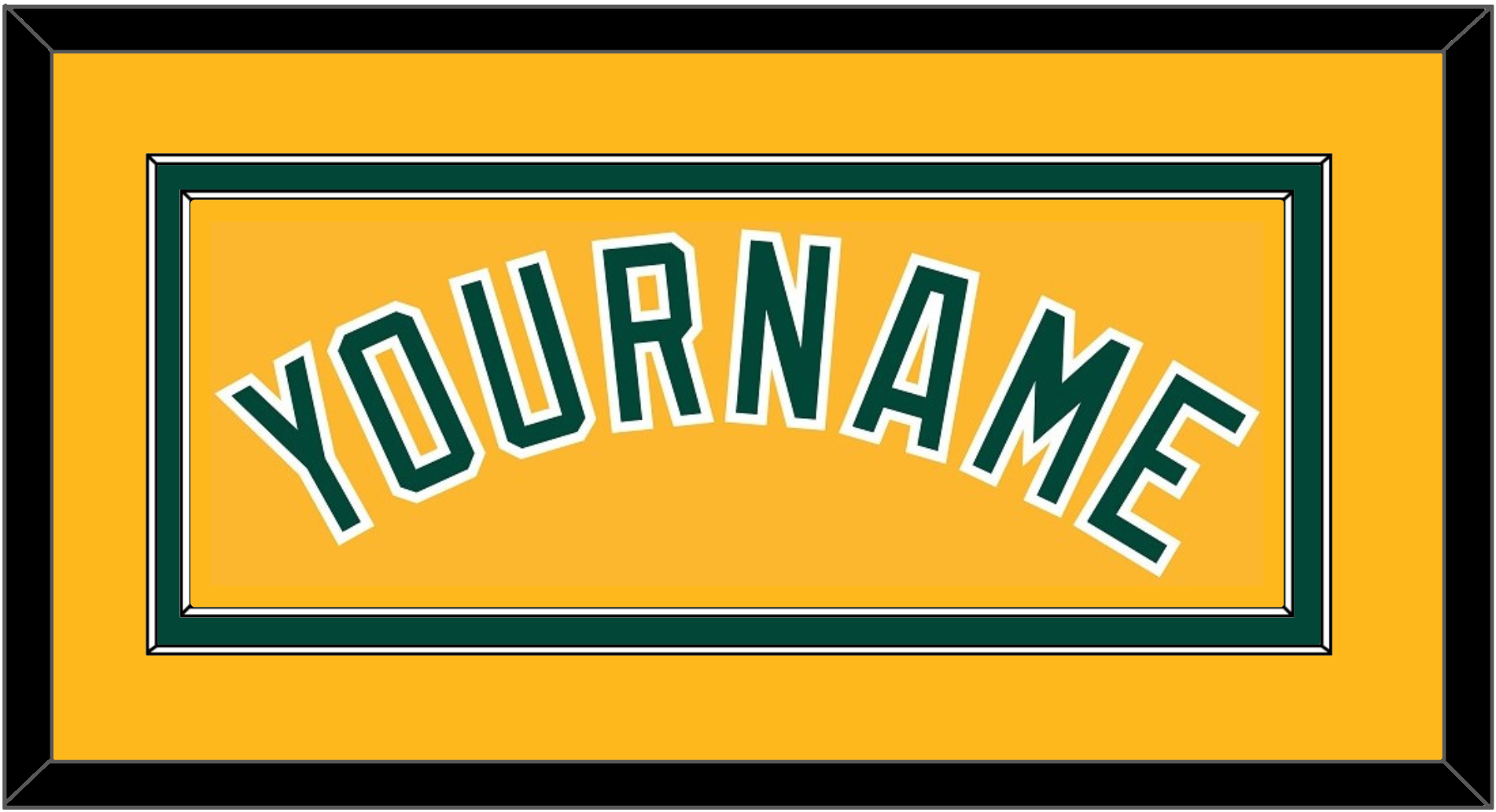 Oakland Alternate Gold Jersey (2011 Through 2018) Name. Double Mat: Gold Mat Over A Green Mat. Green Name Mounted On Gold Mat. White Or Black Frame.