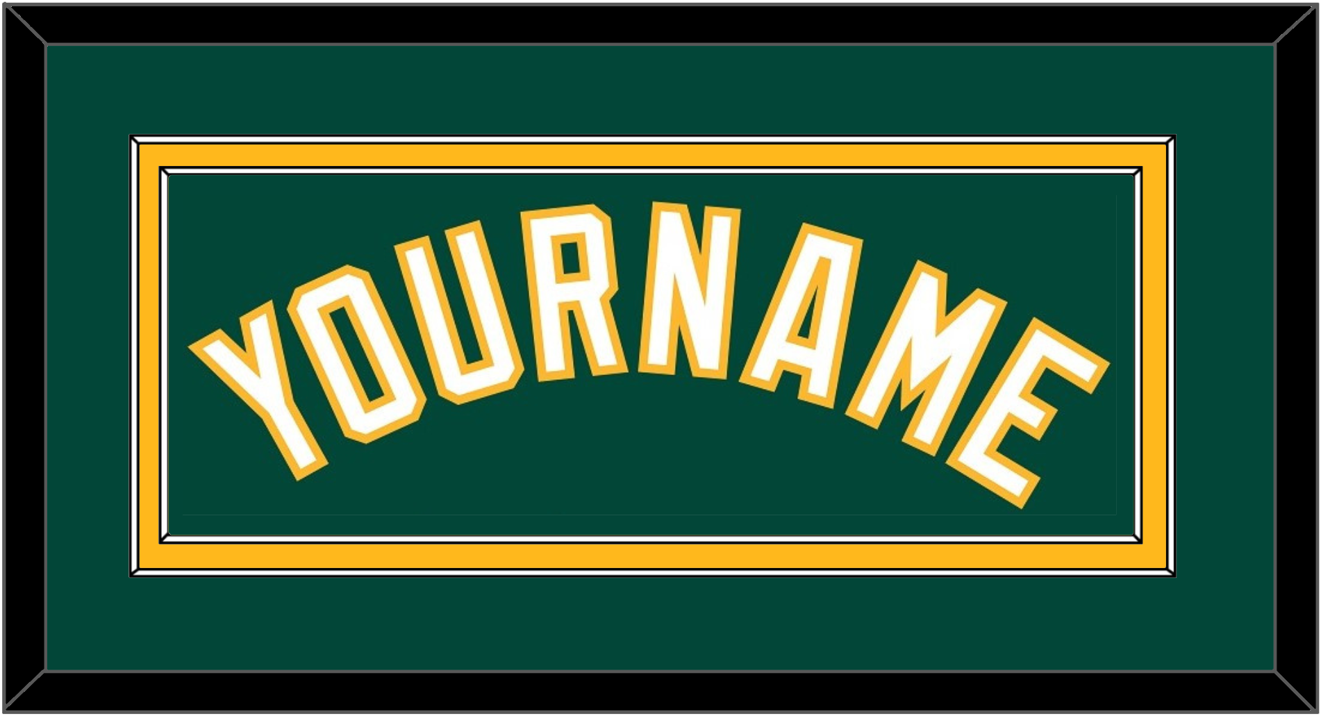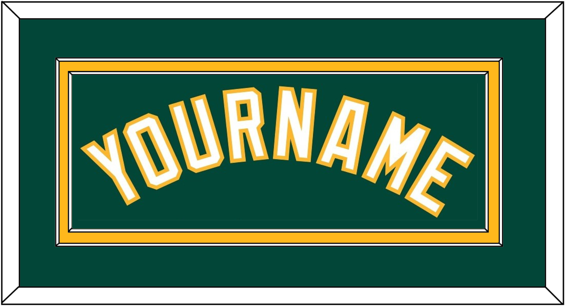 Oakland Alternate Green Jersey Name. Double Mat: Green Mat Over A Yellow Mat. White Name Mounted On Green Mat. White Or Black Frame.