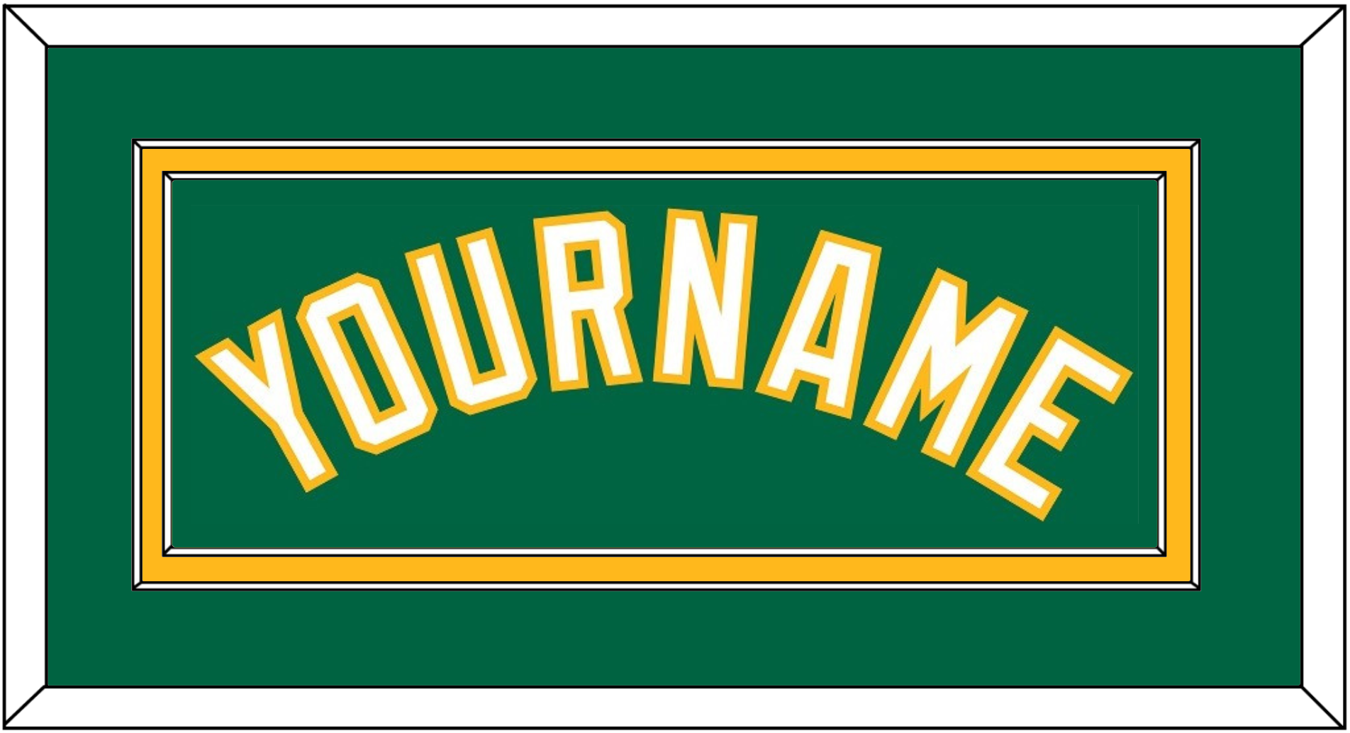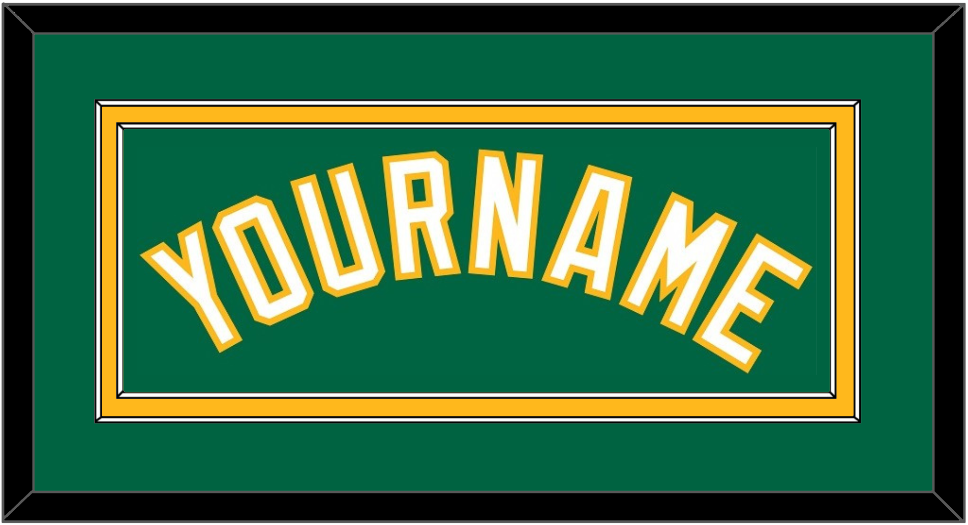 Oakland Alternate Kelly Green Jersey Name. Double Mat: Green Mat Over A Yellow Mat. White Name Mounted On Green Mat. White Or Black Frame.
