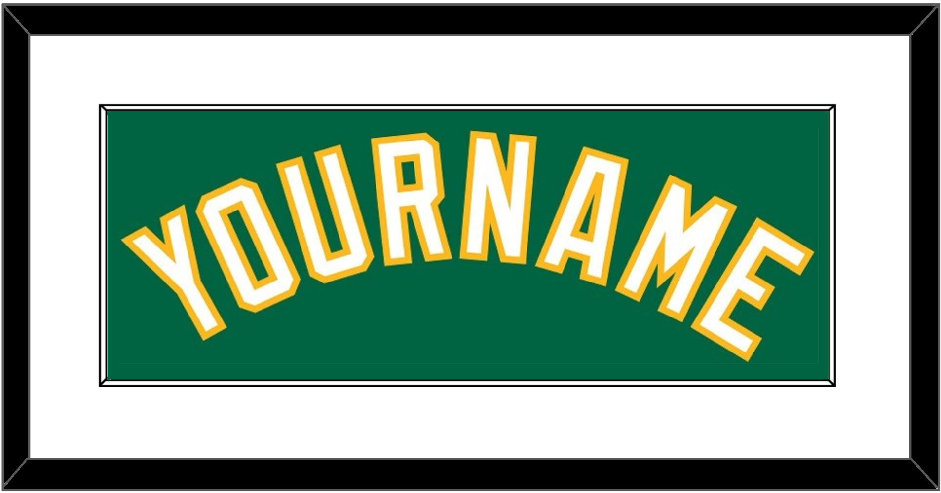Oakland Alternate Kelly Green Jersey Name. Single Mat: White Mat With White Name Mounted On Green Mat. Black Frame.