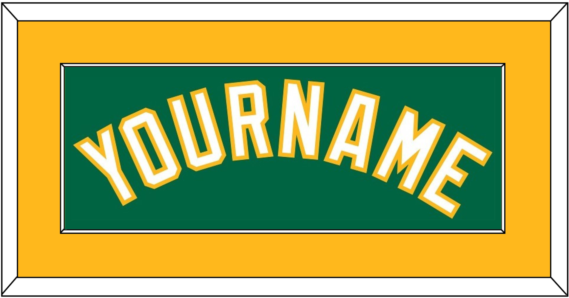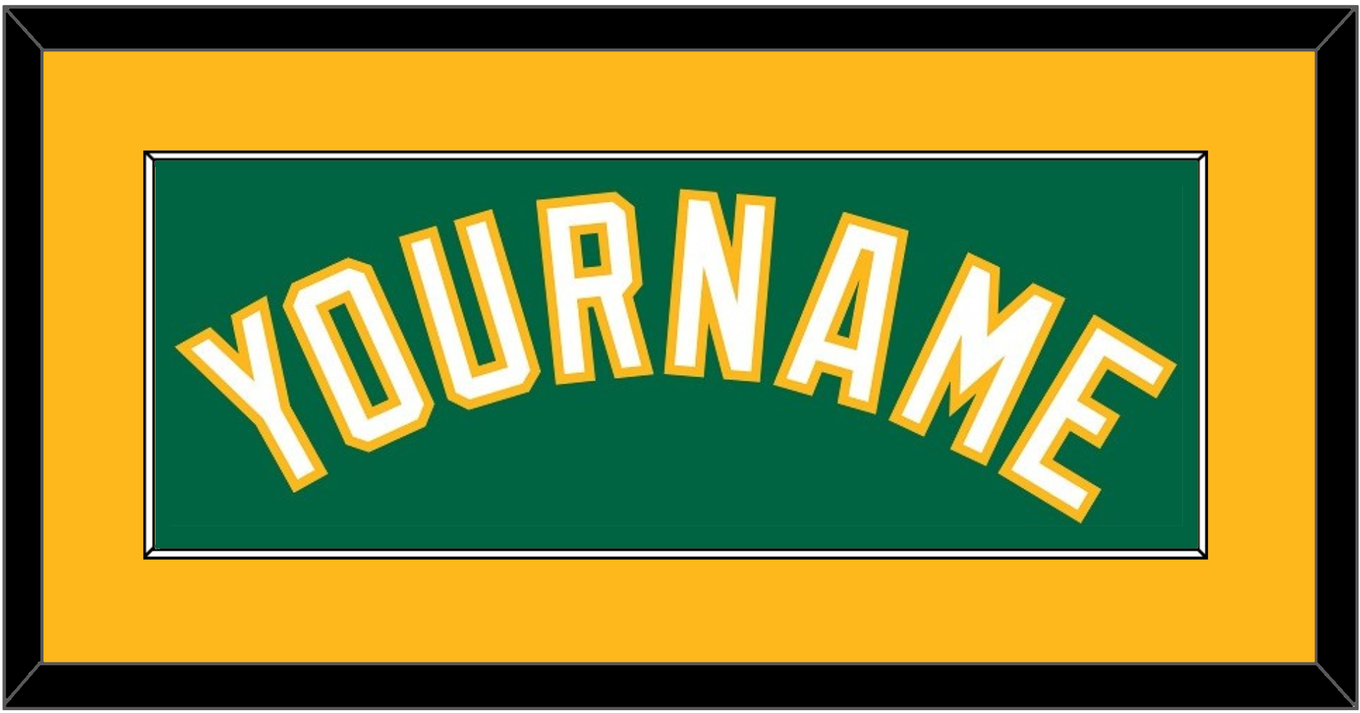 Oakland Alternate Kelly Green Jersey Name. Single Mat: Yellow Mat With White Name Mounted On Green Mat. White Or Black Frame.