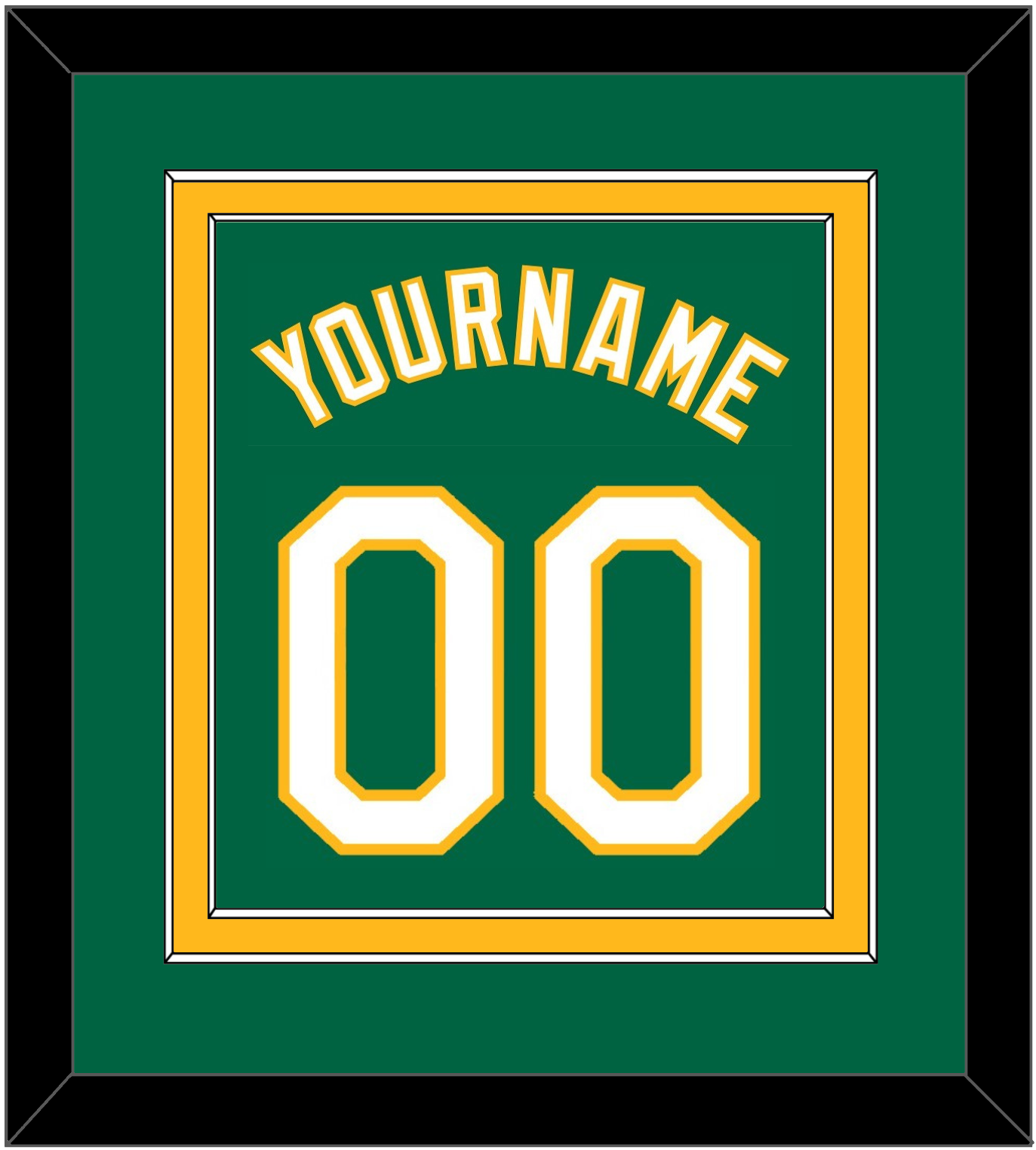 Oakland Alternate Kelly Green Jersey Name & Number. Green Mat Over A Yellow Mat. White Name And Number Mounted On Green Mat. White Or Black Frame.