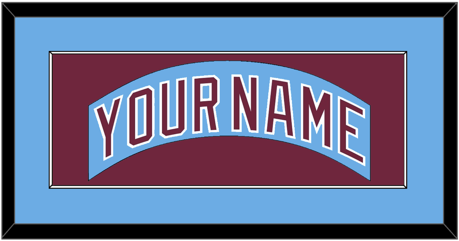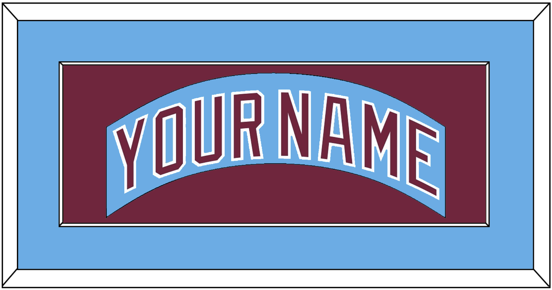 Philadelphia Road Powder Blue Jersey (1973 Through 1986) Nameplate. Single Mat: Powder Blue Mat, With Powder Blue Nameplate Mounted On Maroon Mat. White Or Black Frame.