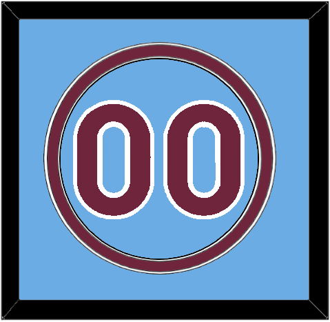 Philadelphia Road Powder Blue Jersey (1973 Through 1986) Number. Double Mat: Powder Blue Mat Over A Maroon Mat. Maroon Number Mounted On A Powder Blue Mat. White Or Black Frame.