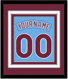 Philadelphia Nostalgia Powder Blue Jersey Nameplate & Number.   Triple Mat Cut: Maroon Mat A White Mat Over A Maroon Mat.  Powder Blue Nameplate And Maroon Number Mounted On A Powder Blue Mat.  White Or Black Frame.