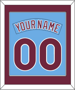 Philadelphia Nostalgia Powder Blue Jersey Nameplate & Number. Single Mat Cut: Maroon Mat With Powder Blue Nameplate And Maroon Number Mounted On A Powder Blue Mat. White Or Black Frame.