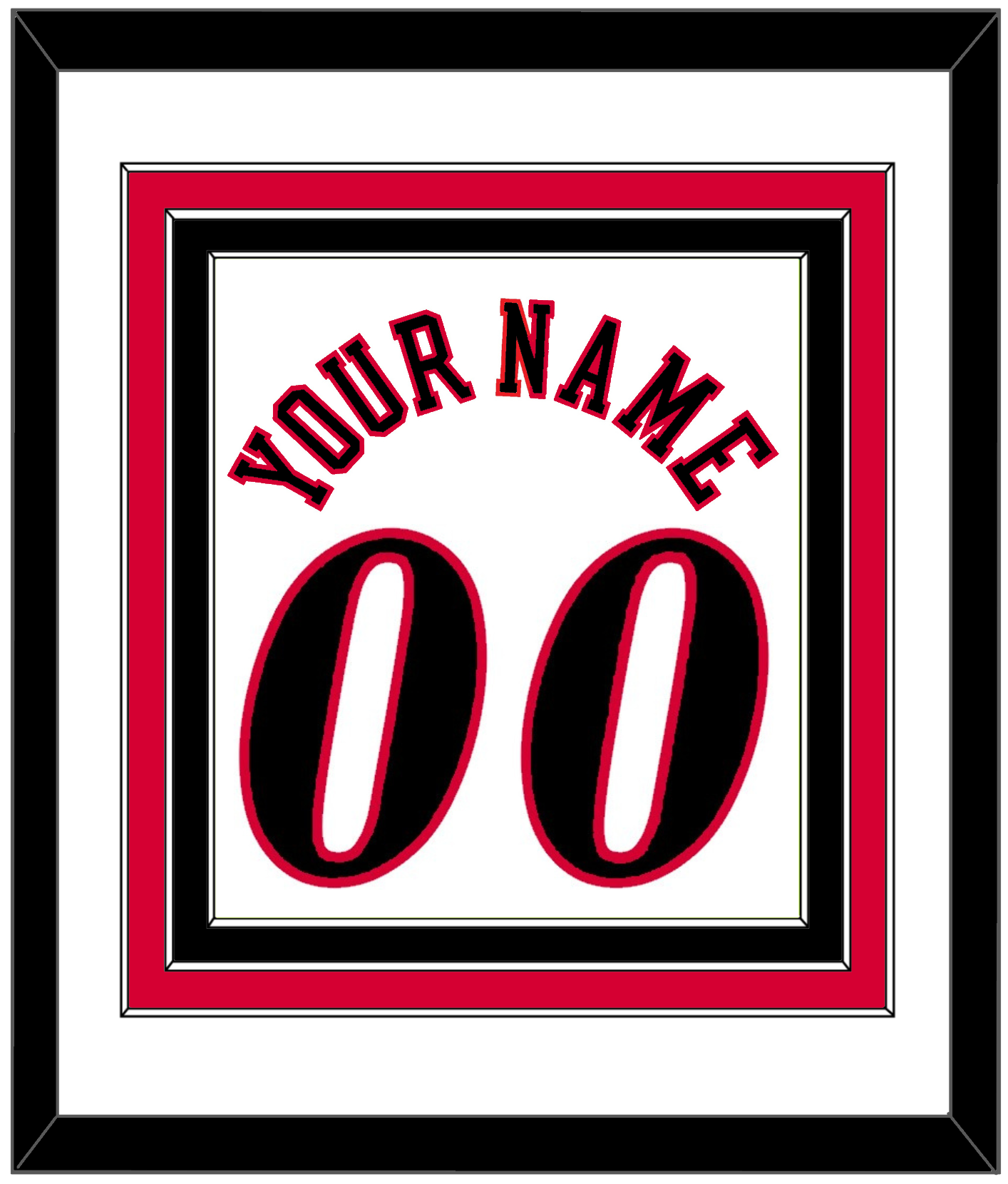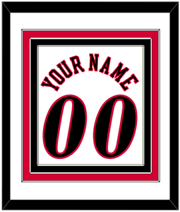 Philadelphia Home White Jersey (1997 Through 2009) Name & Number. Triple Mat: White Mat Over A Red Mat Over A Black Mat. Black Name And Number Mounted On A White Mat. Black Frame.