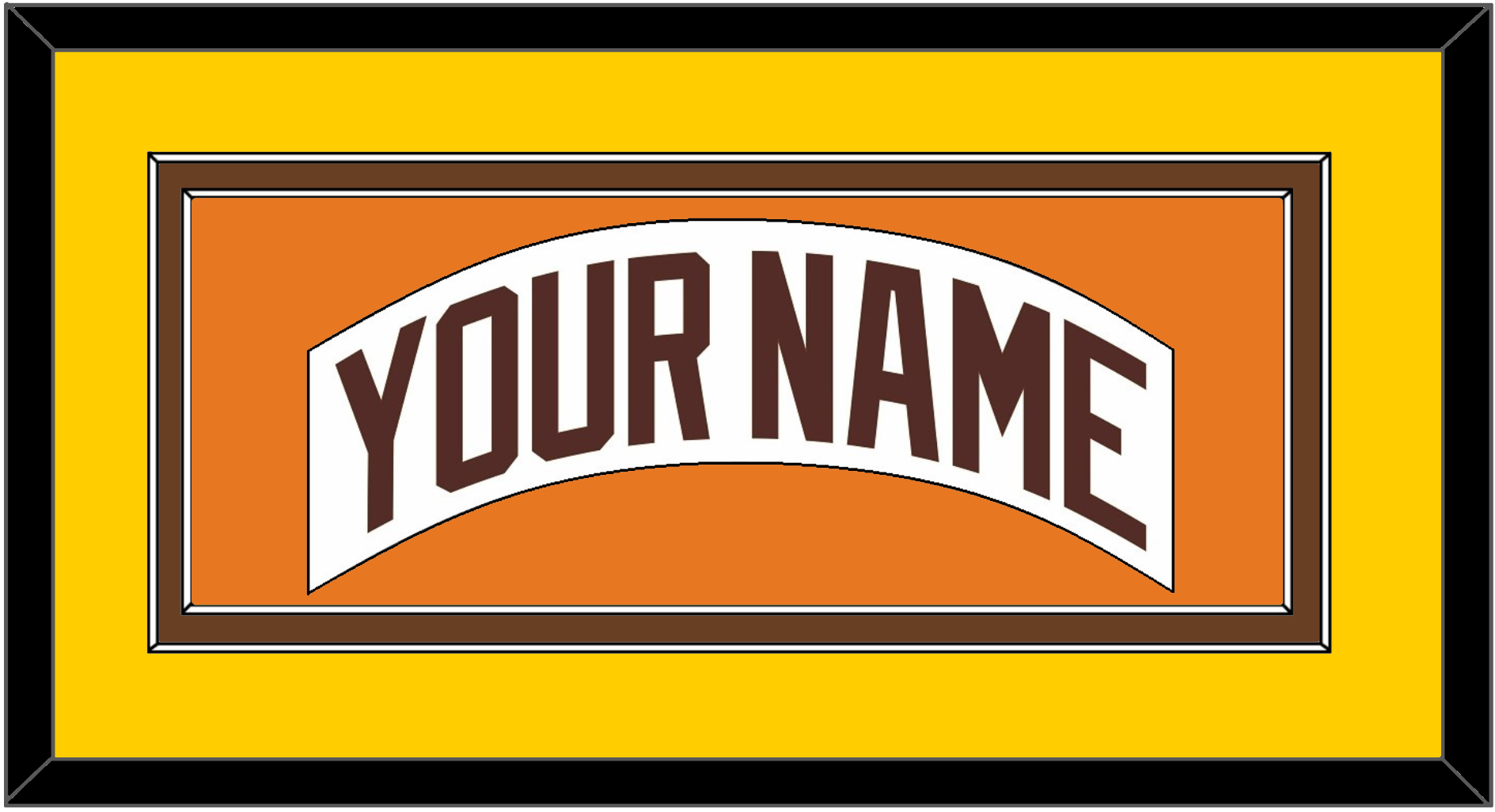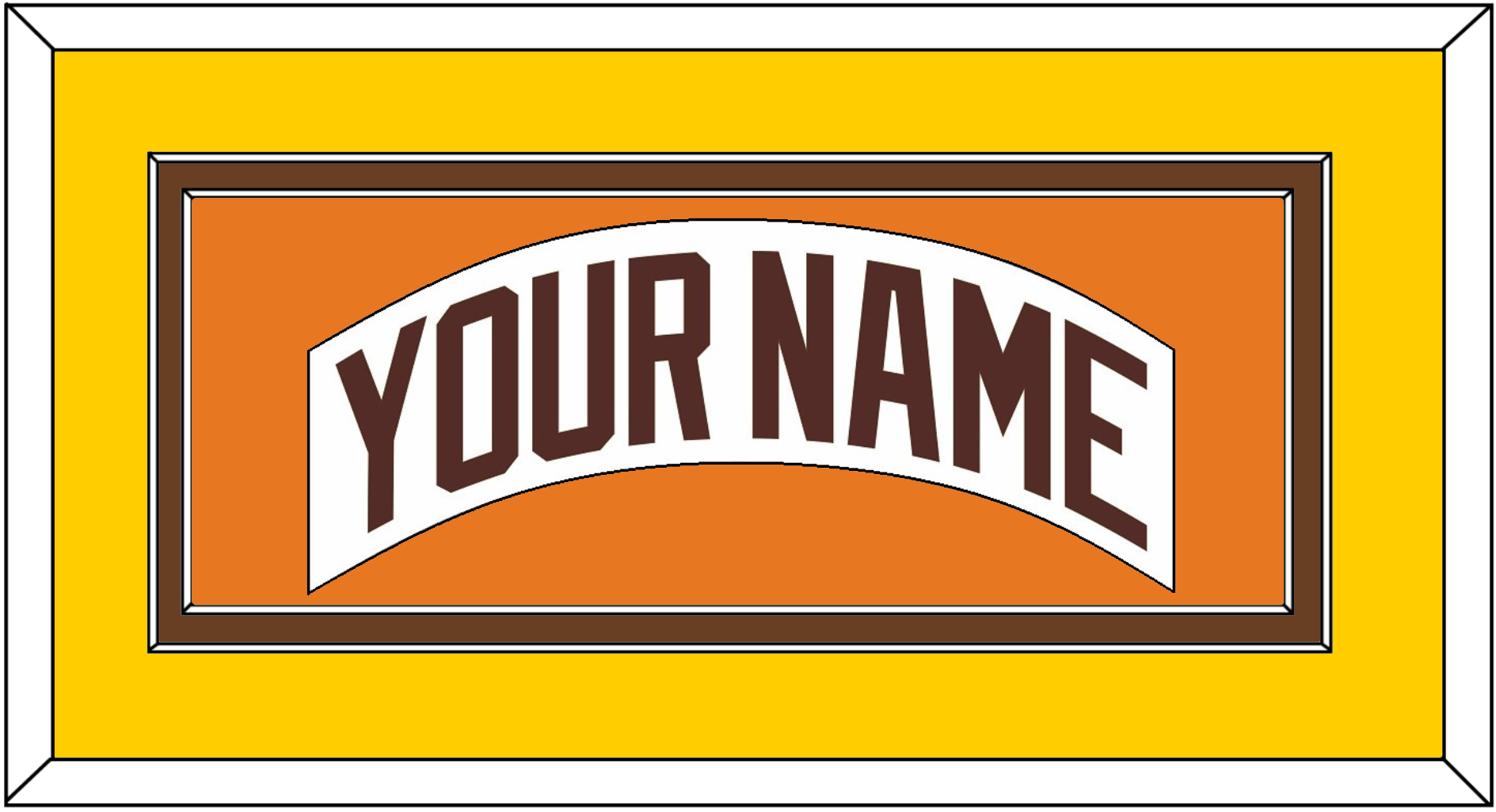 San Diego Home White Jersey (1980 Through 1984) Nameplate.  Double Mat:  Yellow Mat Over A Yellow Mat.  White Nameplate Mounted On An Orange Mat.  Black Or White Frame.