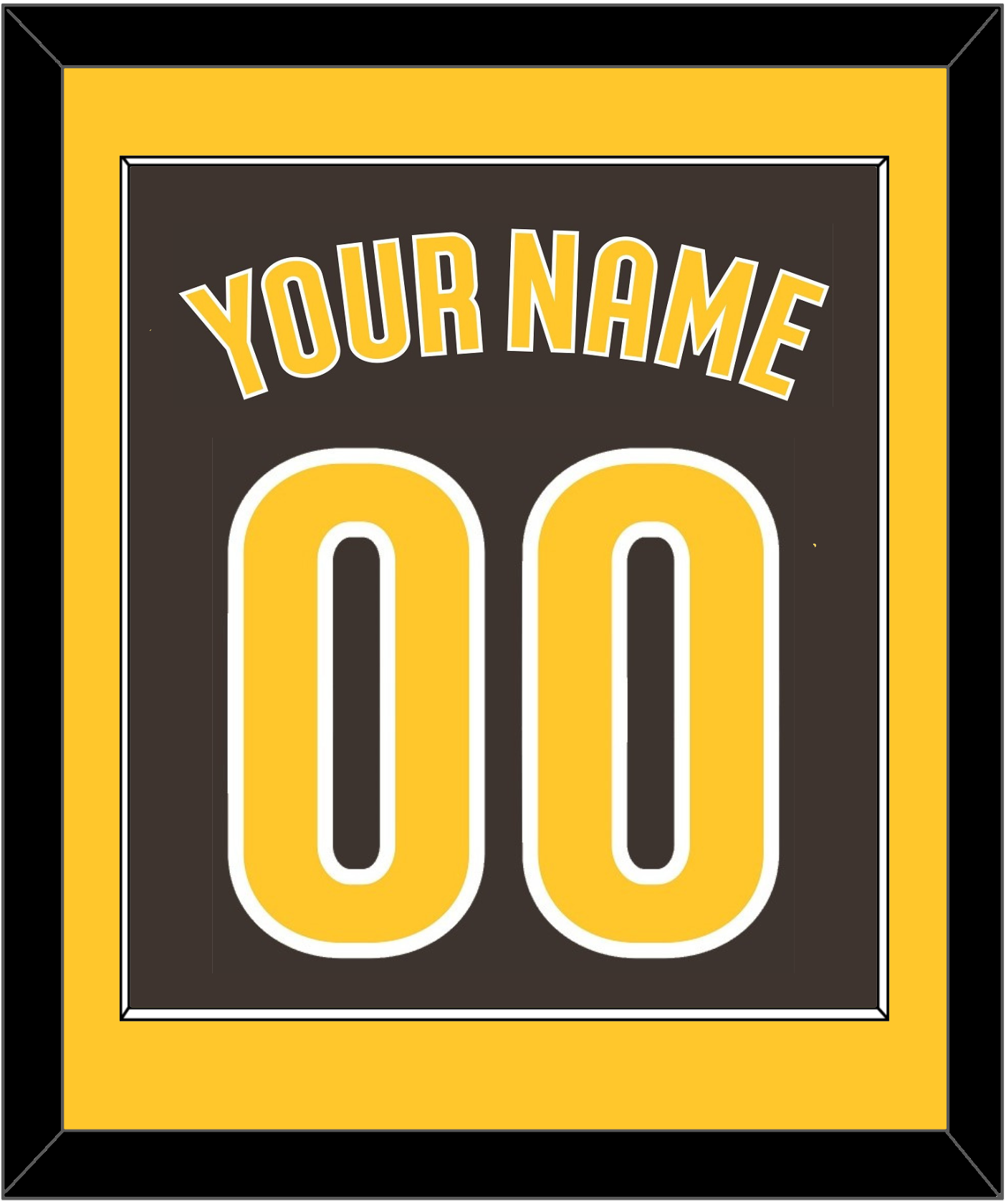 San Diego Alternate Brown Jersey Name & Number.   Single Mat:  Gold Mat With Gold Name And Number Mounted On A Brown Mat.  Black Or White Frame.